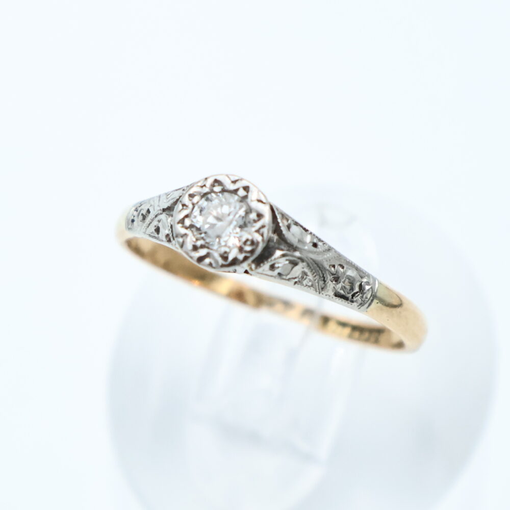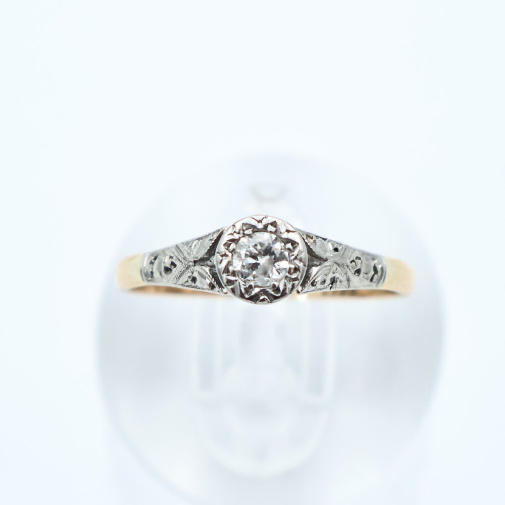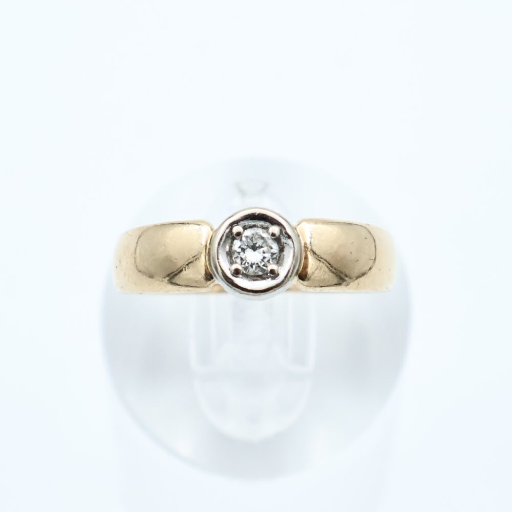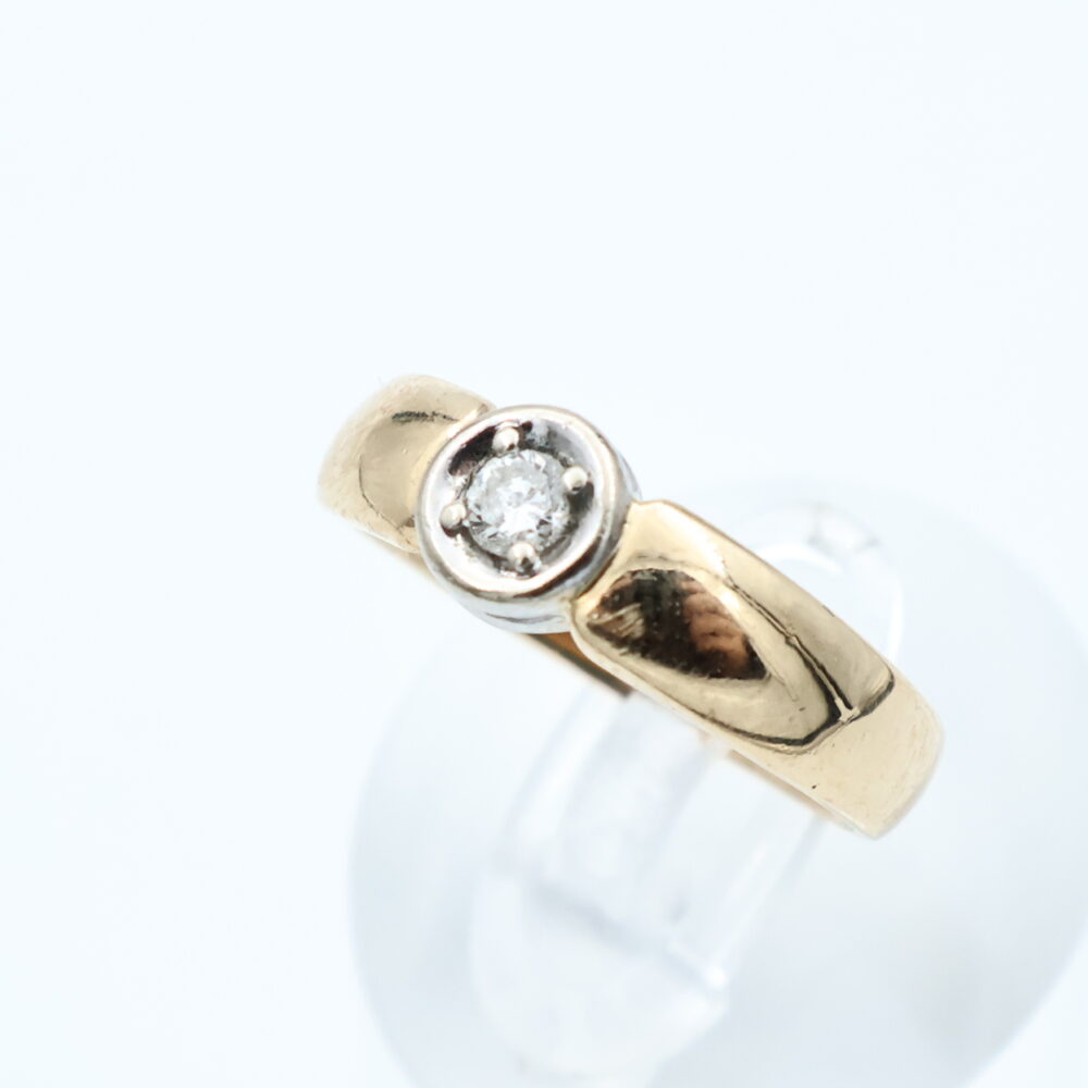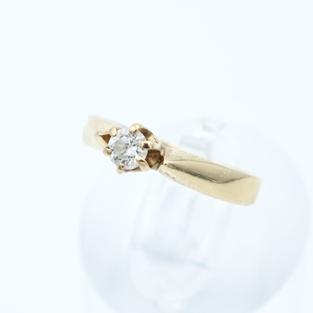 Ring i gult gull med diamant 14kt gull totalvekt 2.1 gram størrelse 50.5 estimert 0.20ct fordelt på 1 stk diamanter