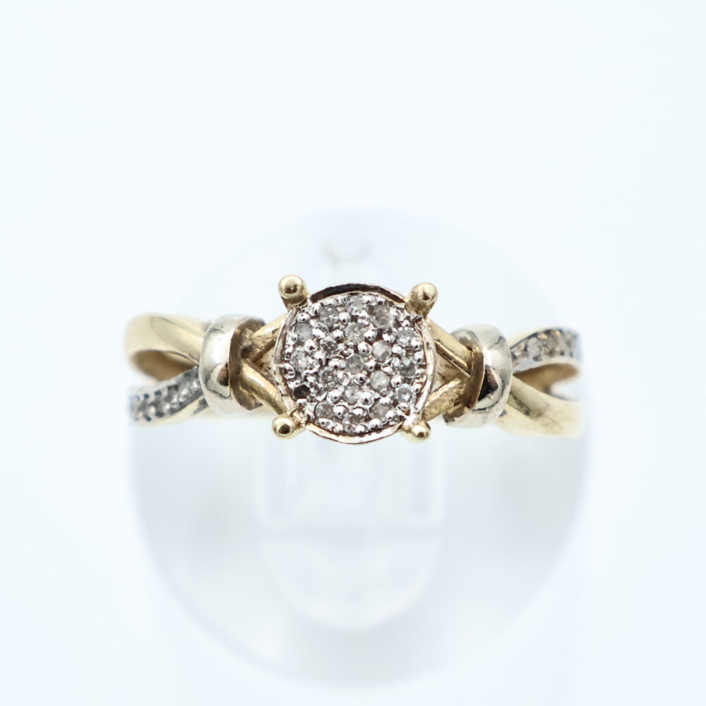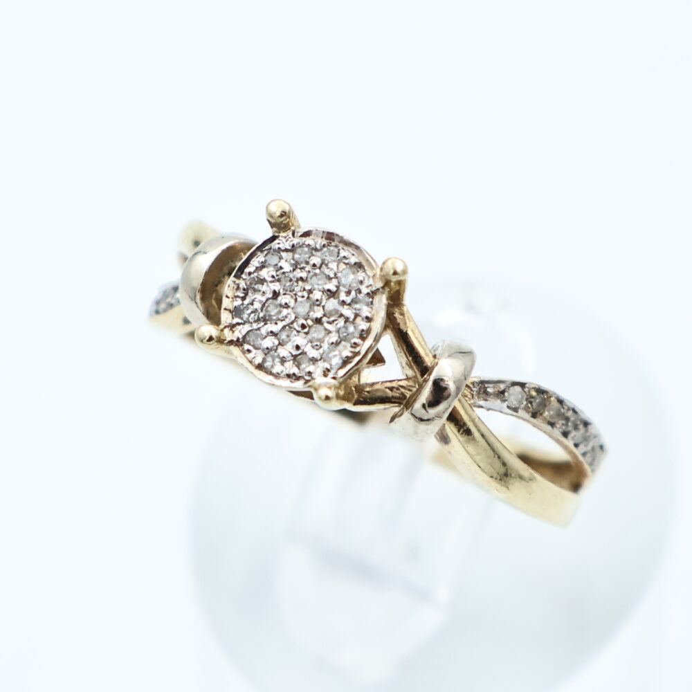 Ring i gult gull med diamanter 9kt gull totalvekt 3.1 gram størrelse 58 største breddemål 6 mm