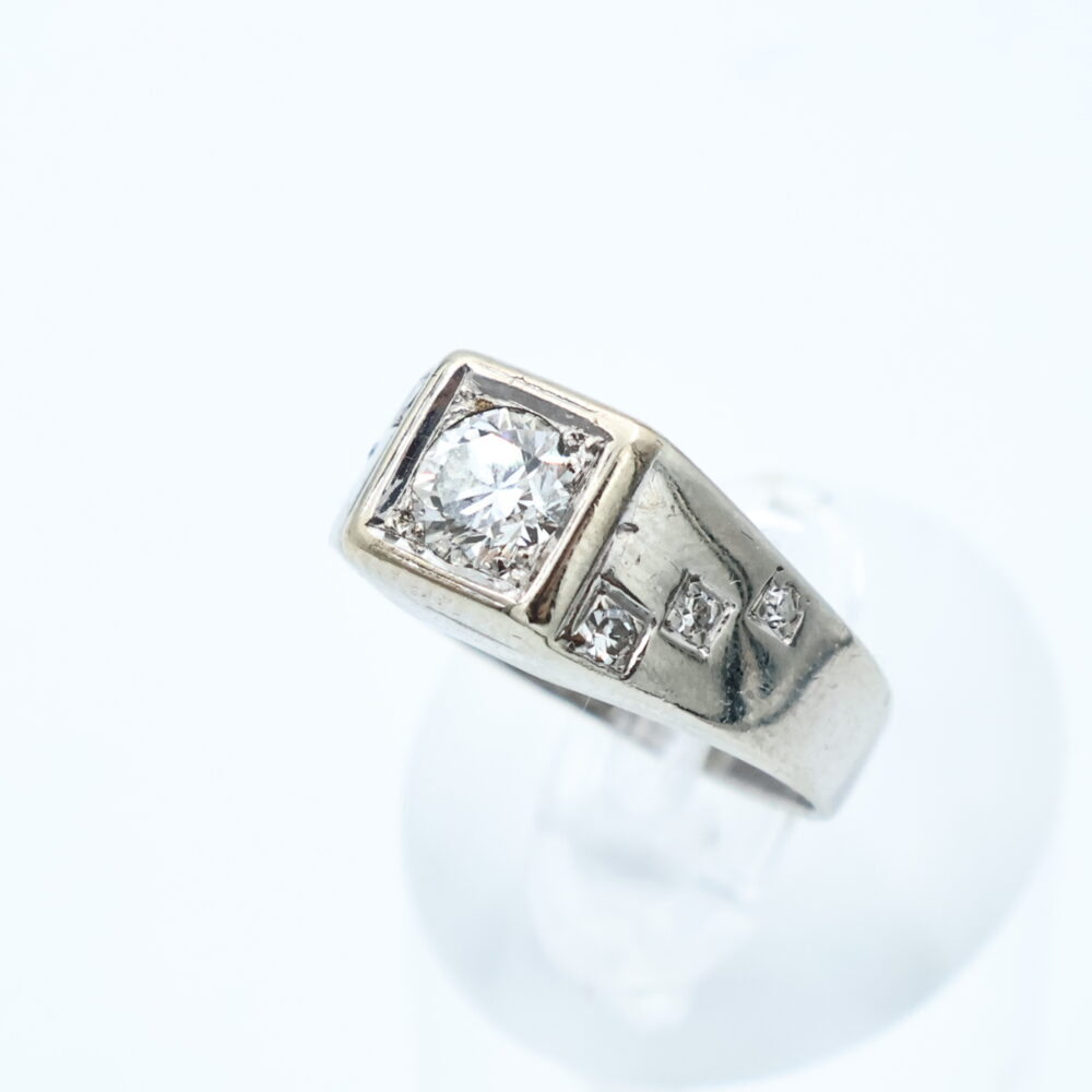 Ring i hvitt gull med diamant 14kt gull totalvekt 7.8 gram størrelse 53.5 estimert 0.75ct fordelt på 1 stk diamanter