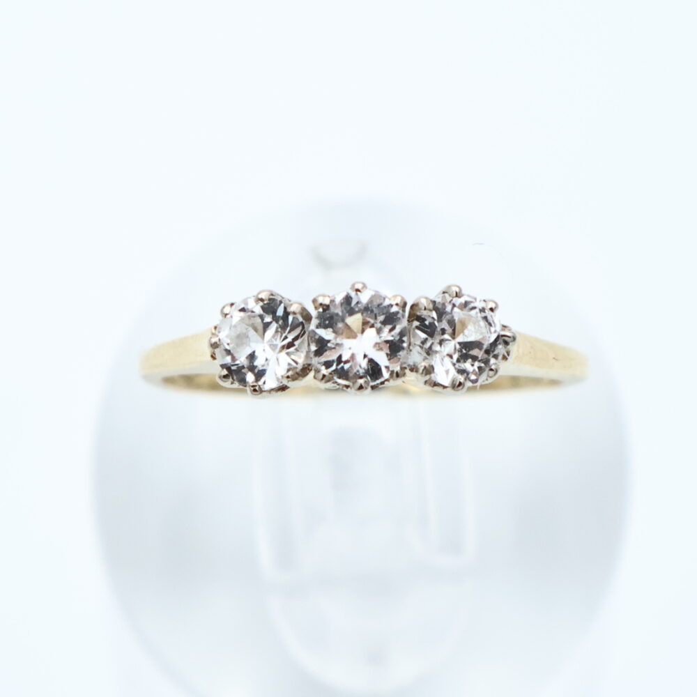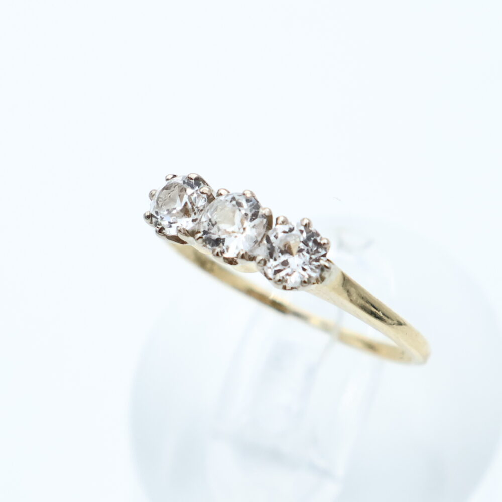 Ring i gult gull med zirkonia 14gull totalvekt 3.6 gram størrelse 58 største breddemål 8 mm