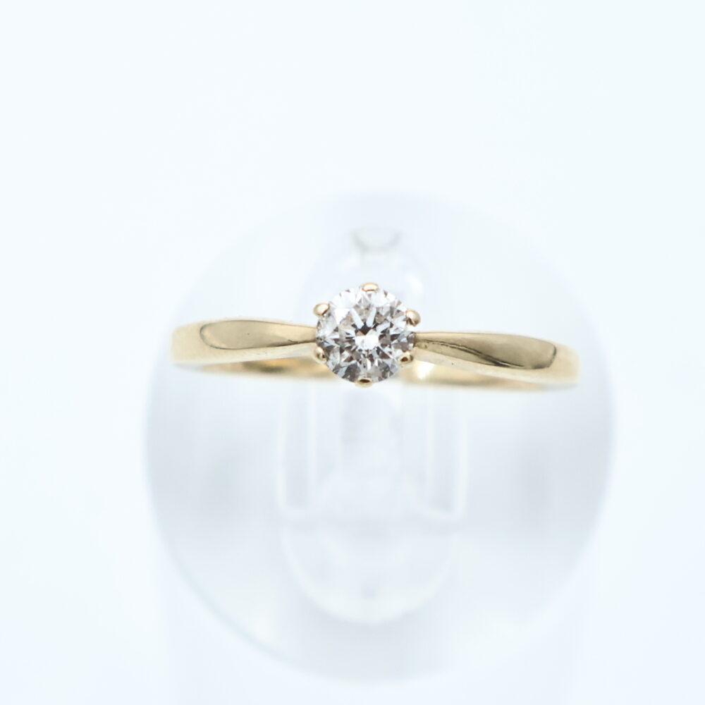 Ring i gult gull med diamant 14kt gull totalvekt 1.9 gram størrelse 51 estimert 0.25ct fordelt på 1 stk diamanter