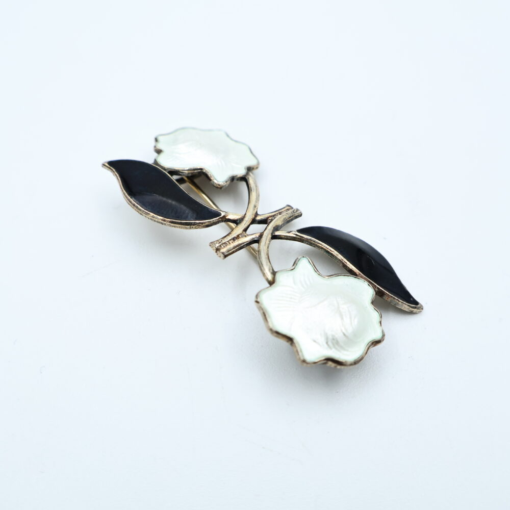 Emaljert brosje i sølv 925 sølv ytre dimensjoner 59×22.4mm totalvekt 9.7 gram
