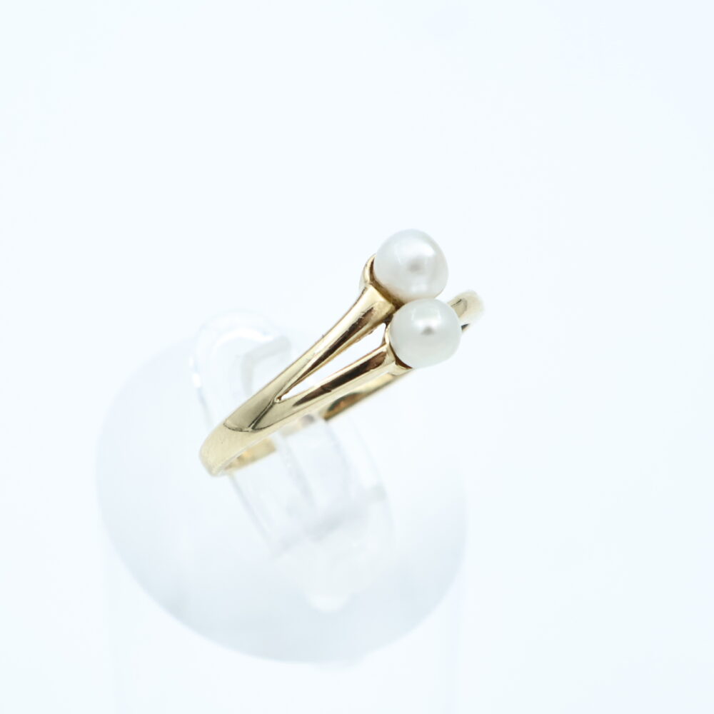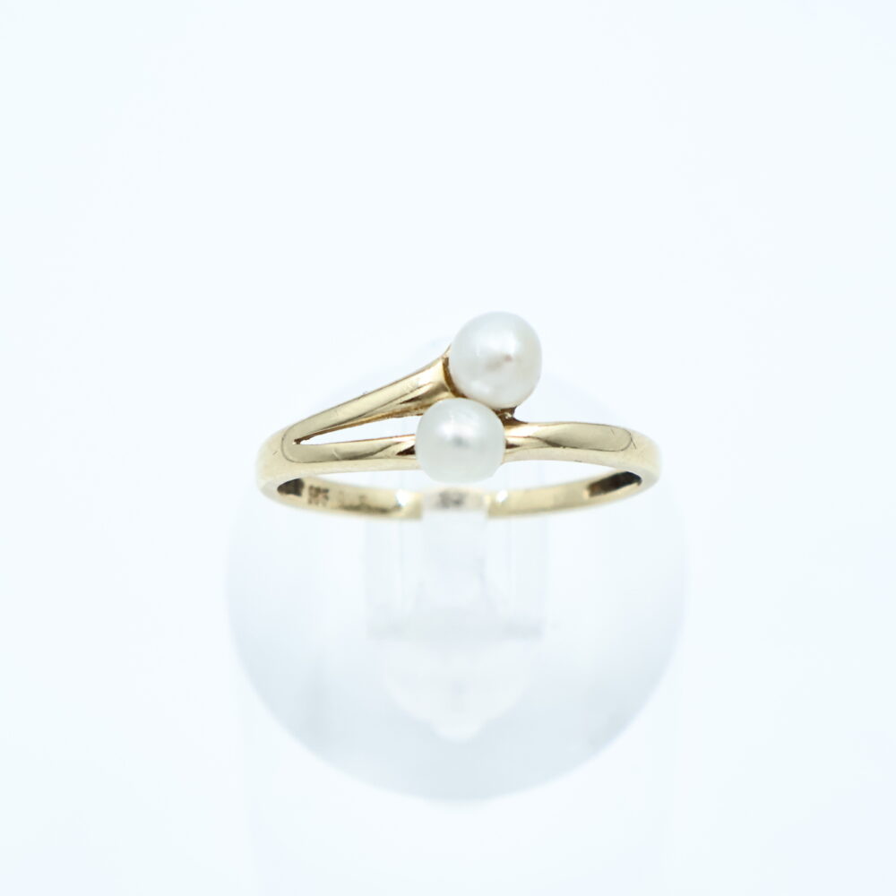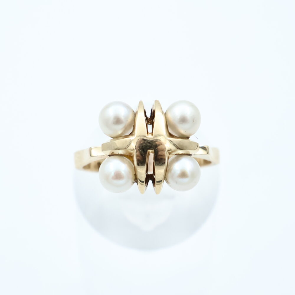 Ring i gult gull med perle 14kt gult gull største breddemål 10.4 mm totalvekt 3.5 gram størrelse 52.5