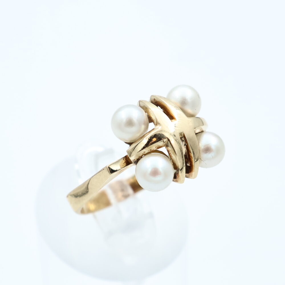 Ring i gult gull med perler 14kt gult gull største breddemål 20.2 mm totalvekt 5.3 gram størrelse 58.5