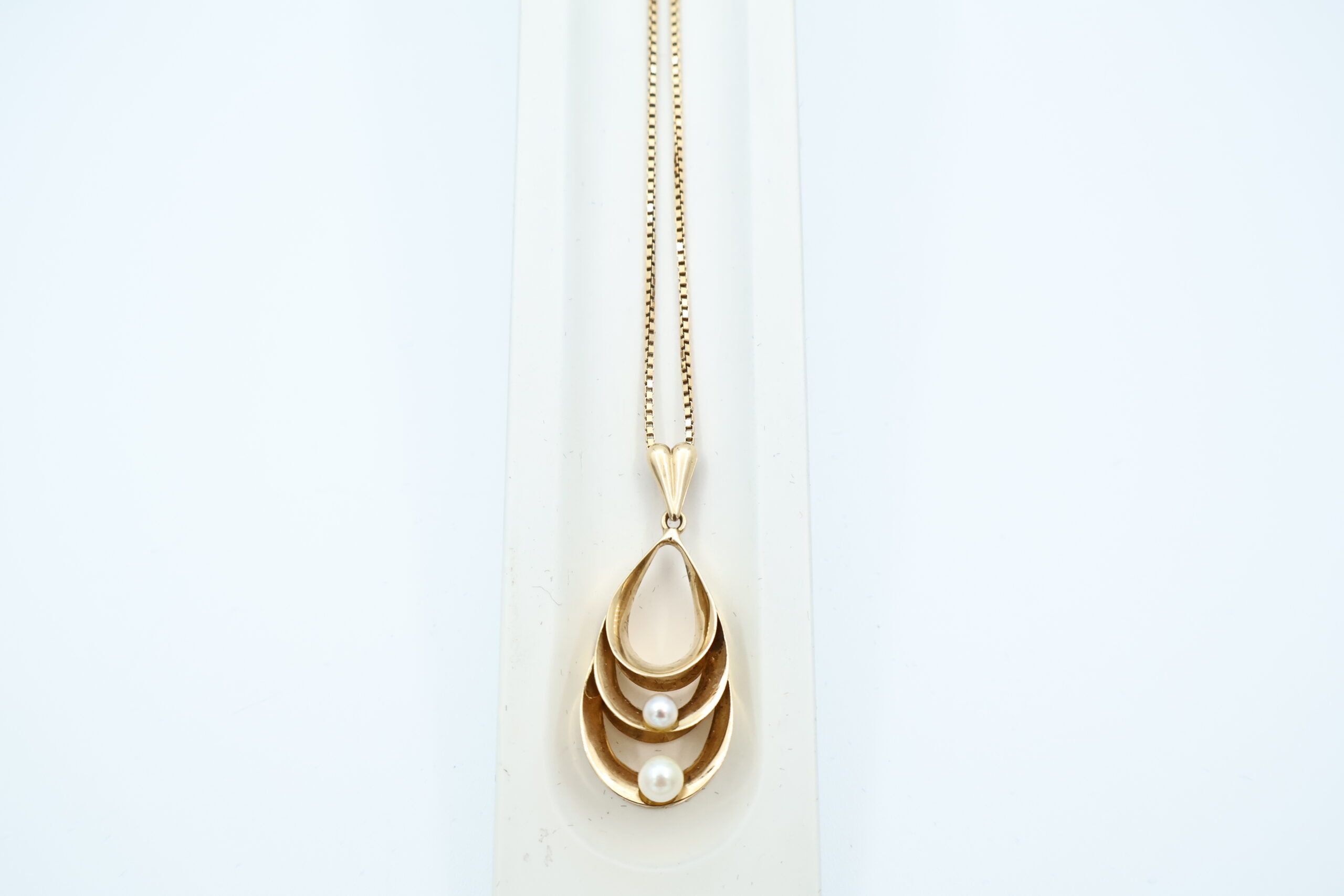 Anheng i gult gull med kulturperle