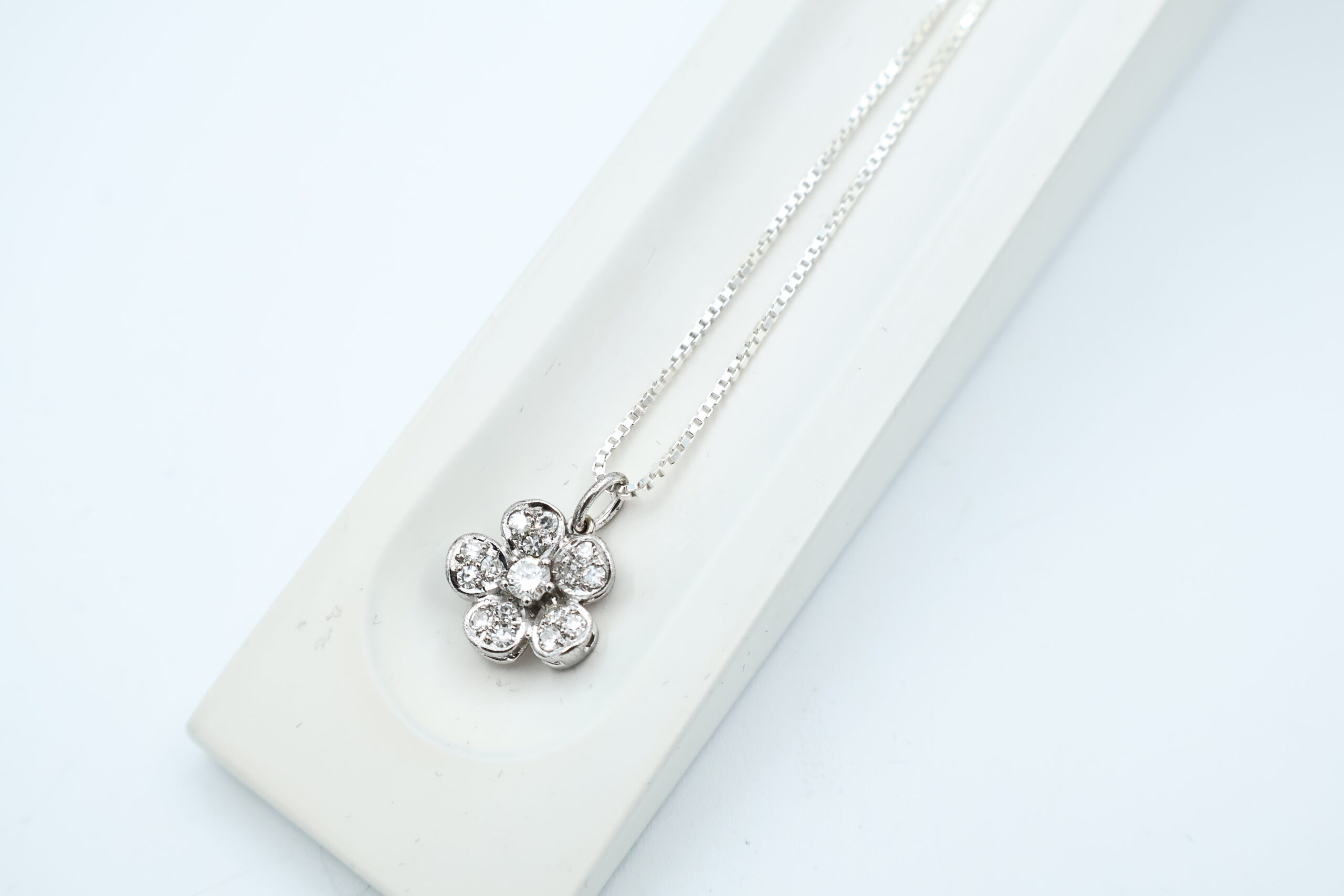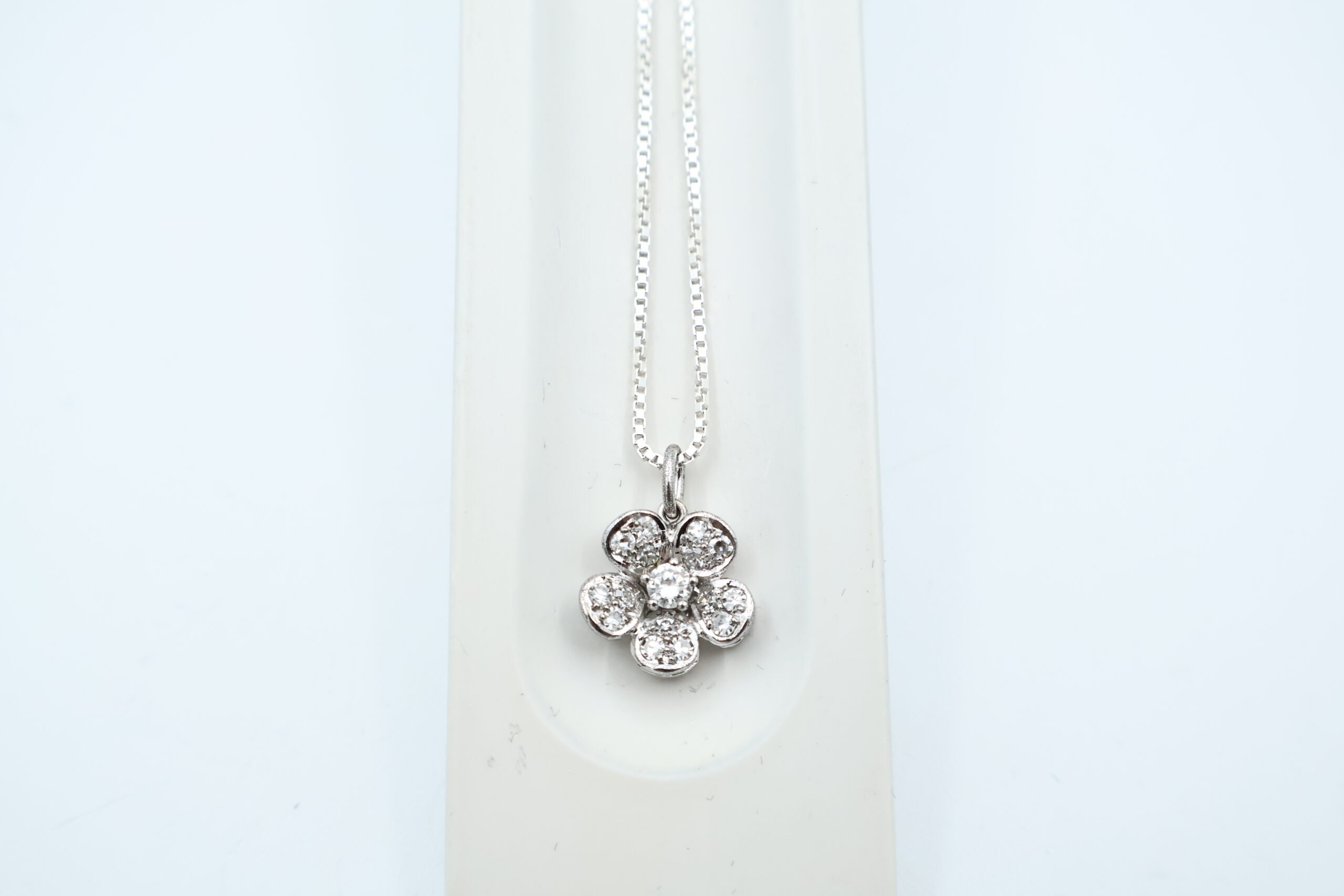 Anheng i hvitt gull med diamanter