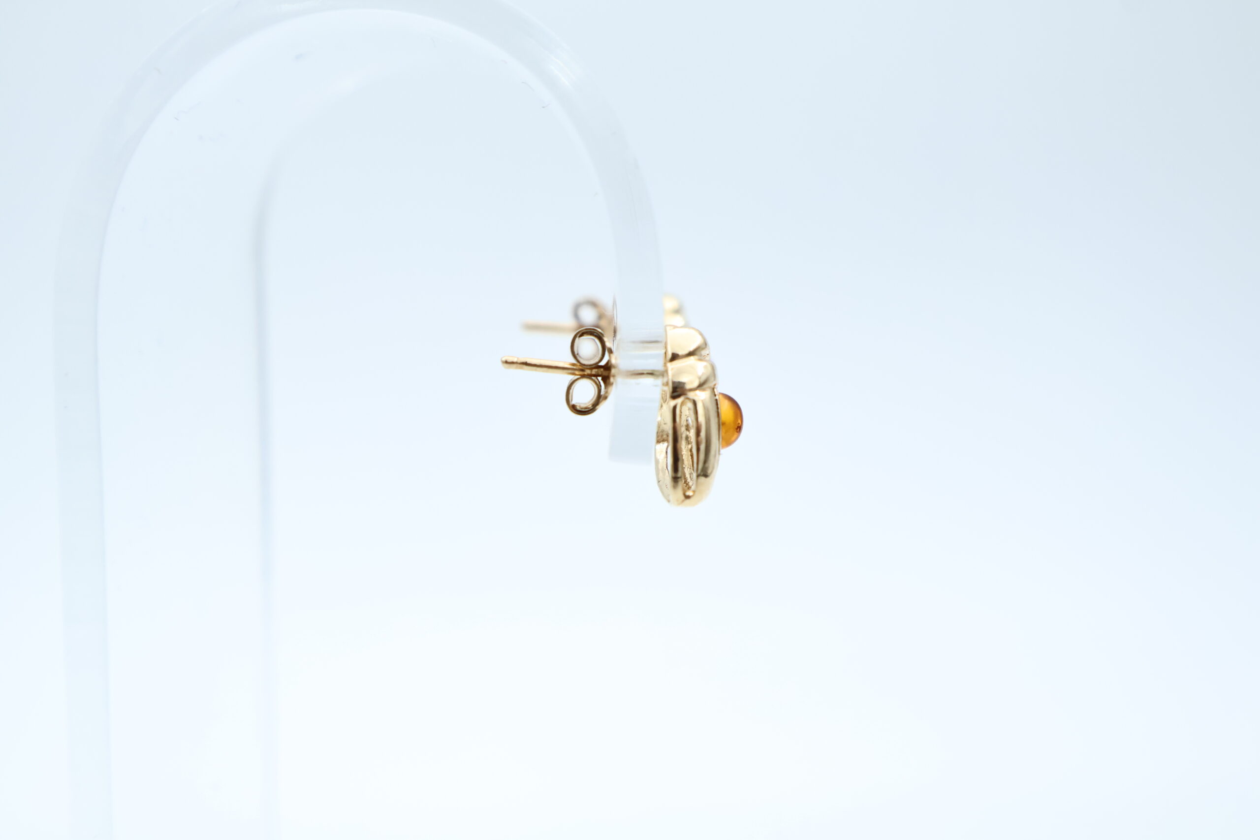 Ørepynt i gult gull med oransje sten