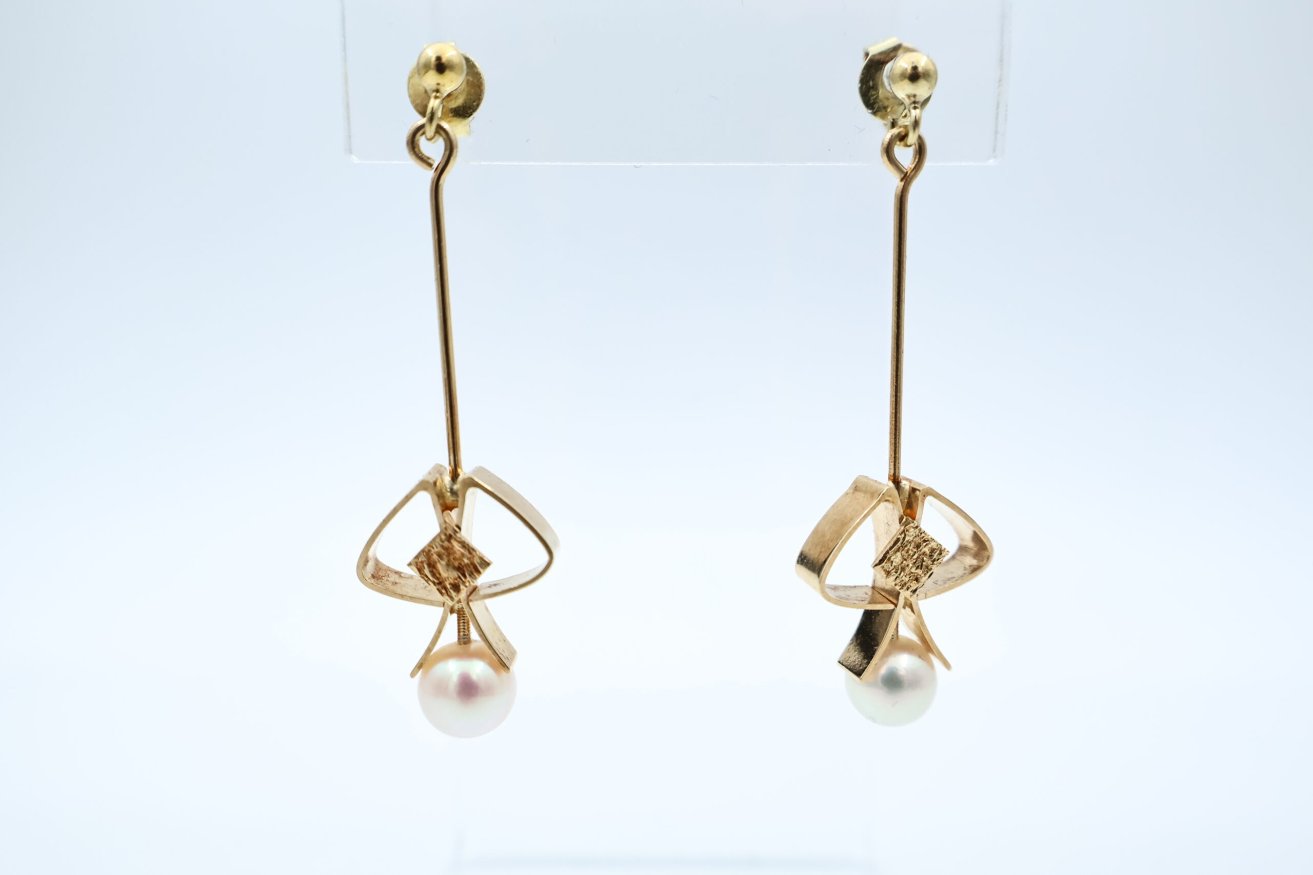 Ørepynt i gult gull med perler