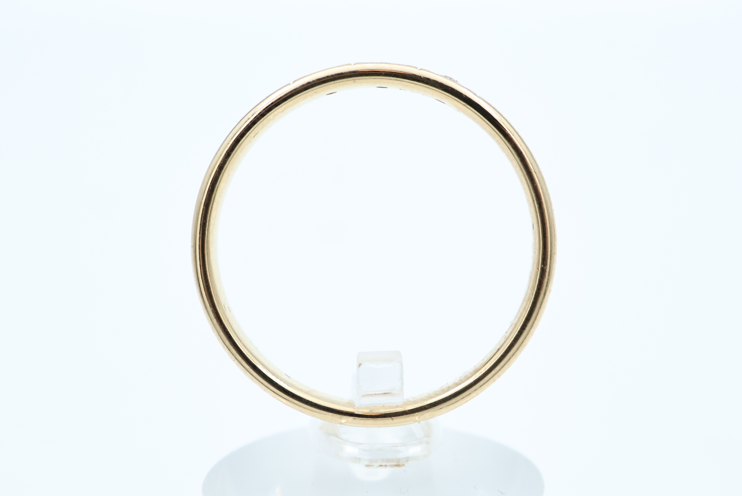 Ring i flerfarget gull med diamant 14kt gult, rødt og hvitt gull største breddemål 6,10 mm totalvekt 3,08 gram estimert