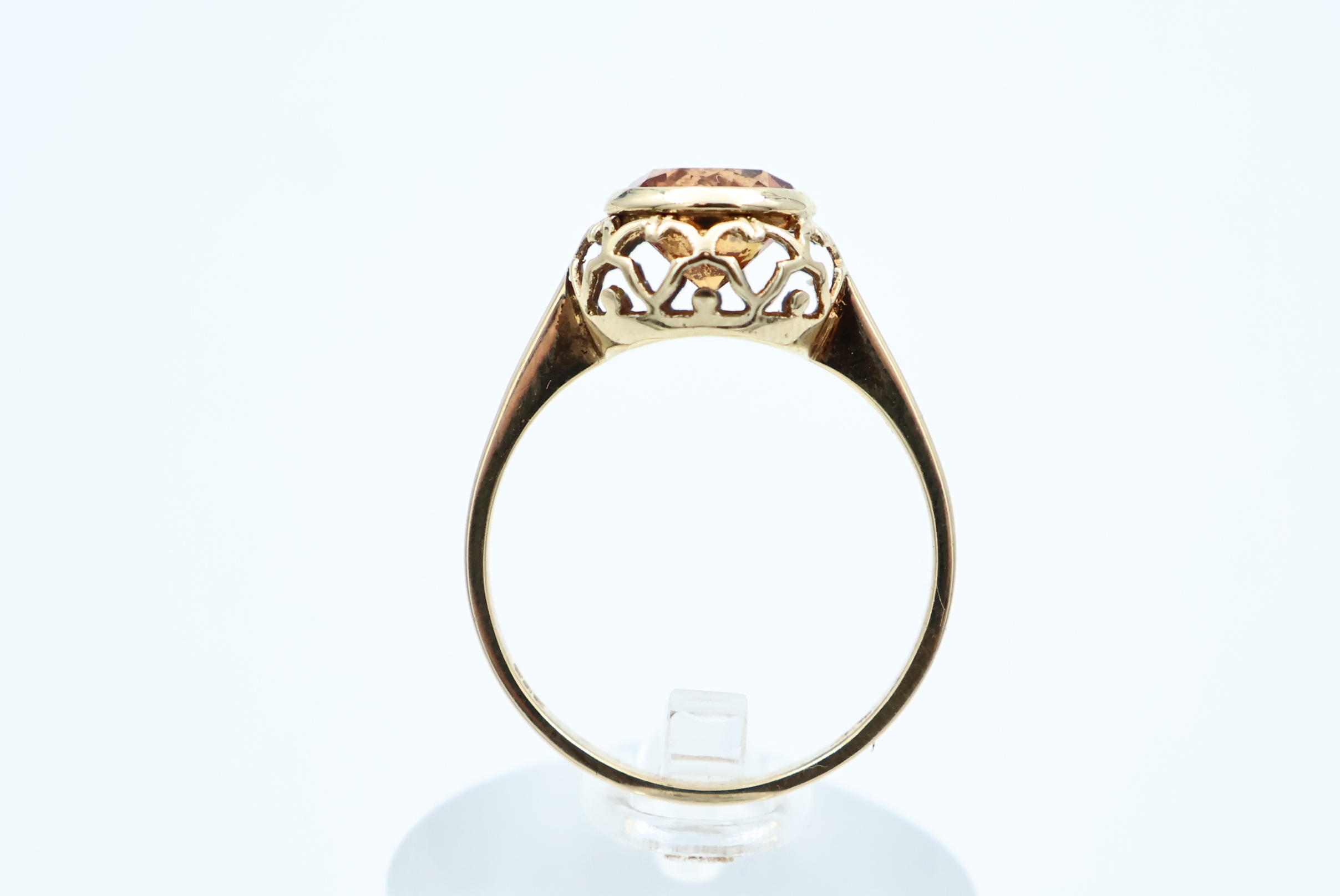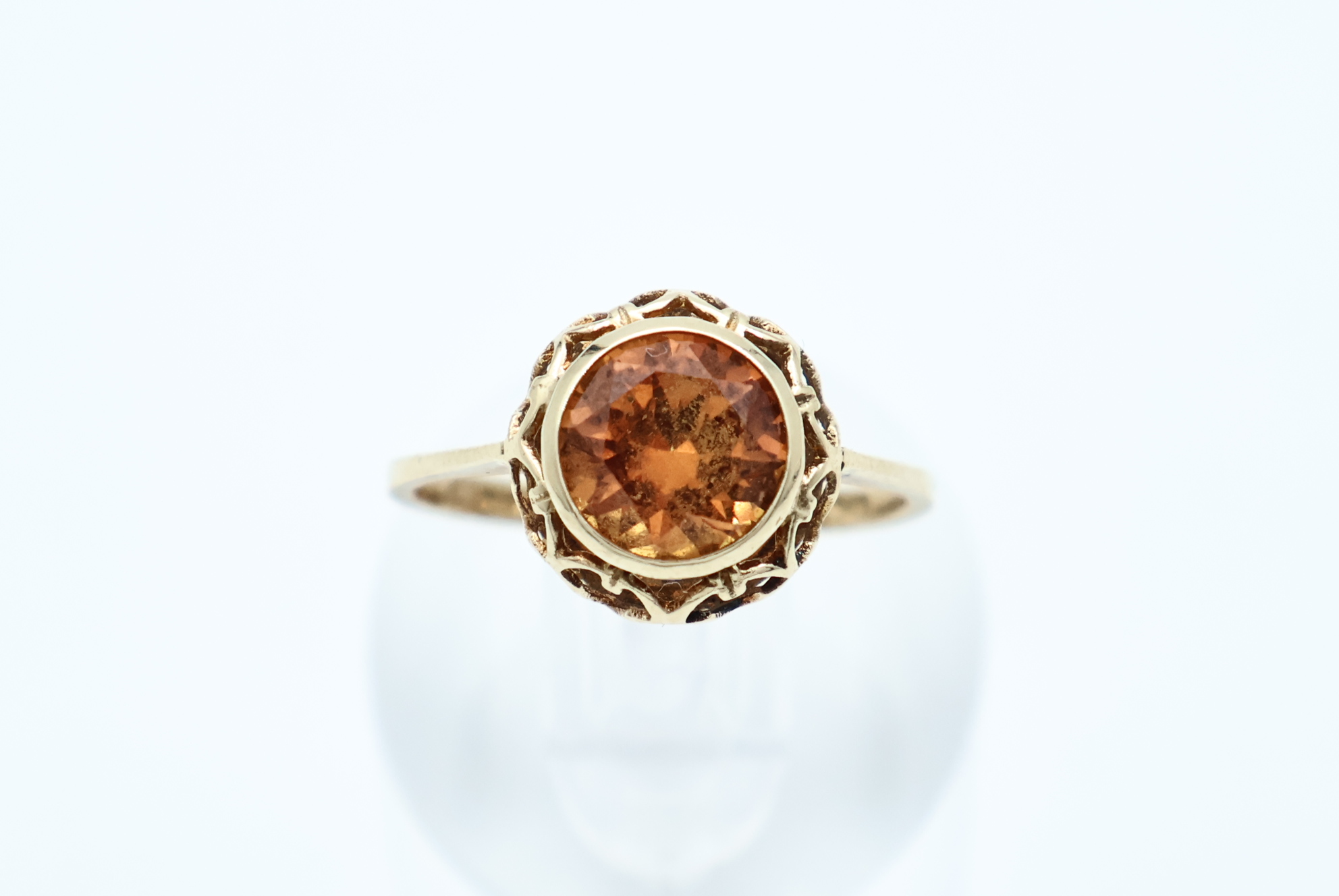 Ring i gult gull med oransje sten