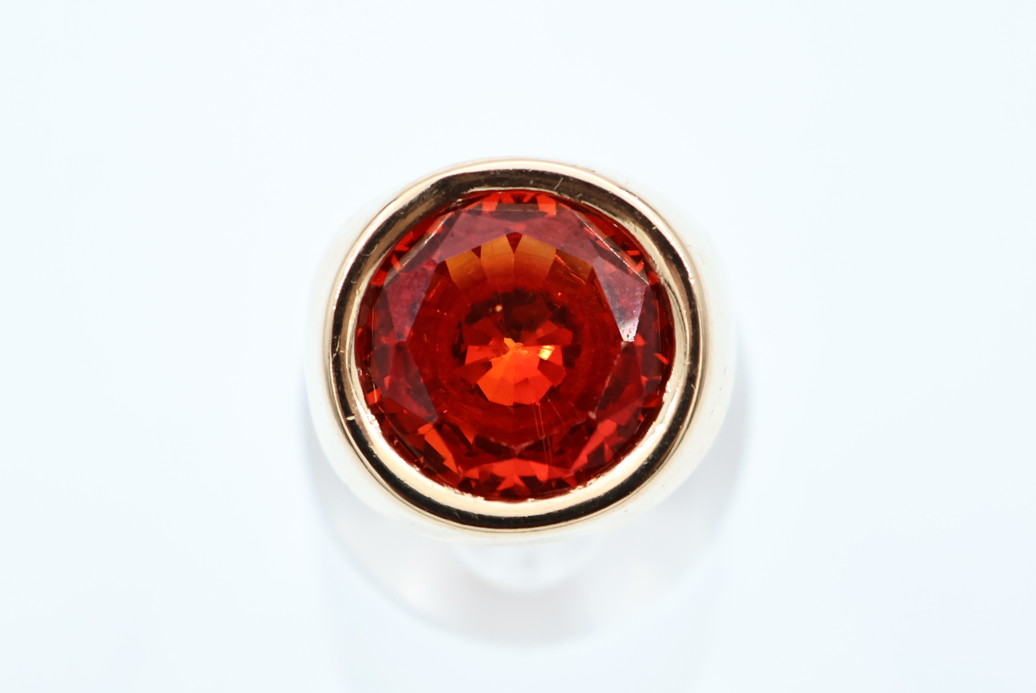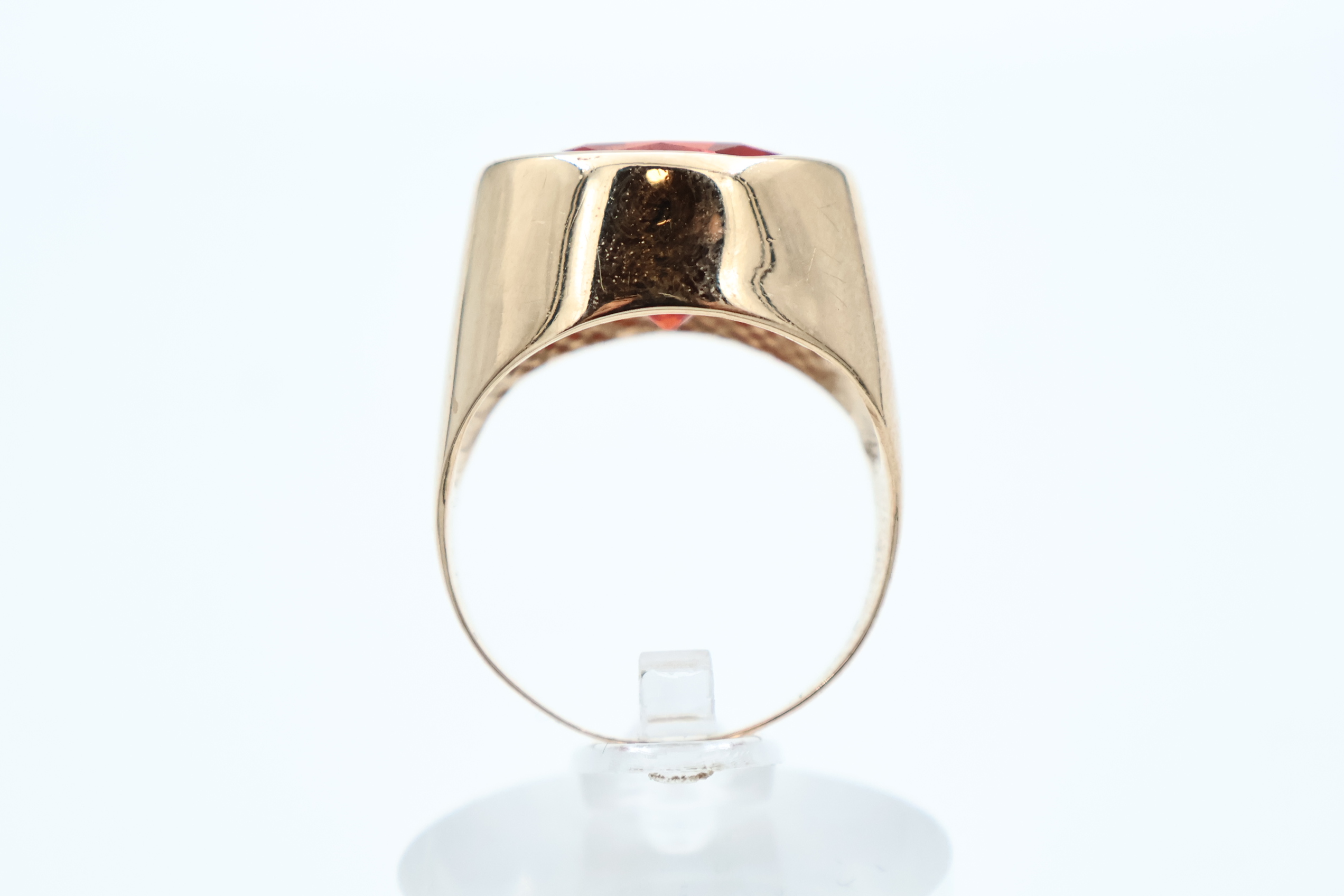 Ring i flerfarget gull med diamant 14kt gult, rødt og hvitt gull største breddemål 6,10 mm totalvekt 3,08 gram estimert