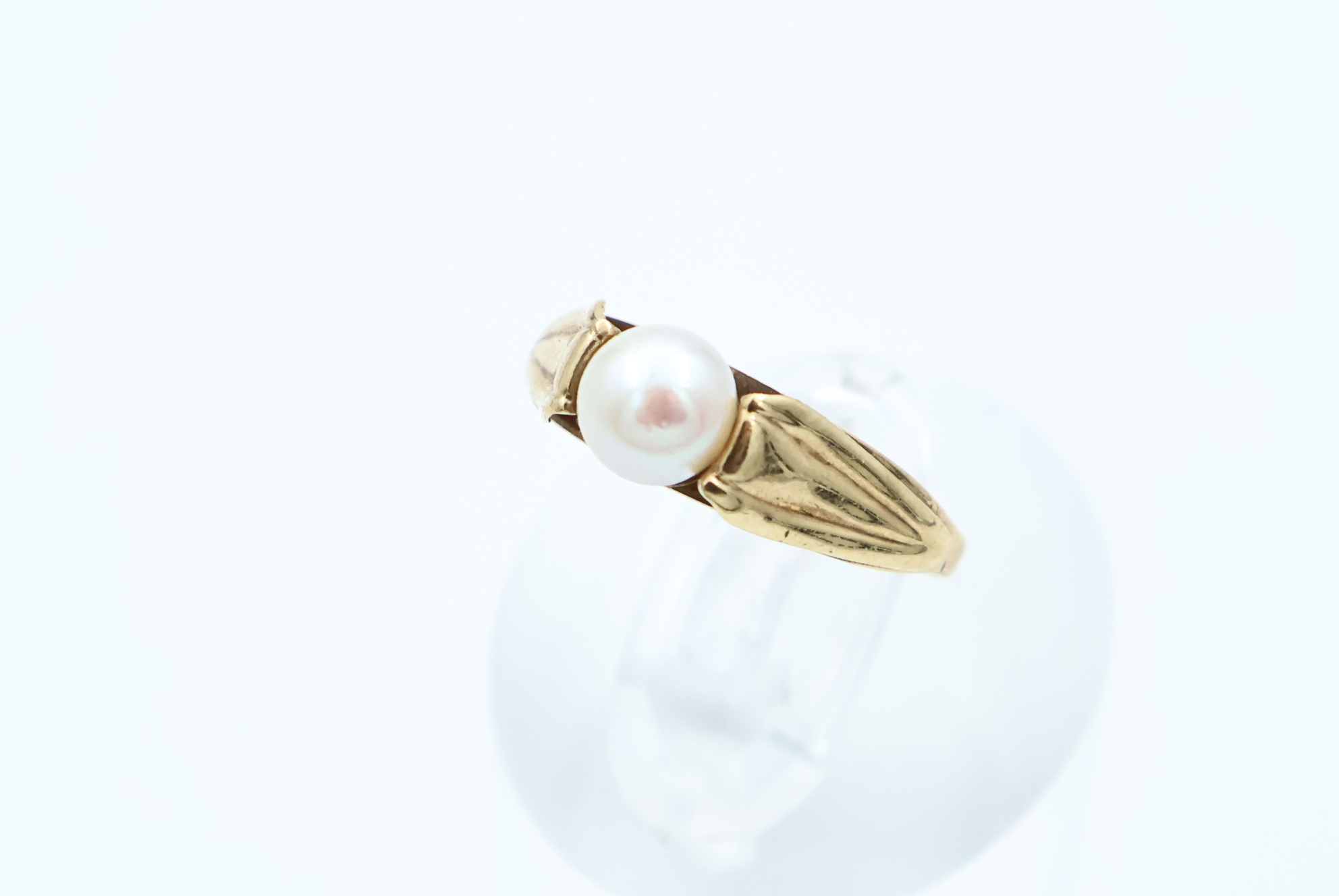Ring i gult gull med perle
