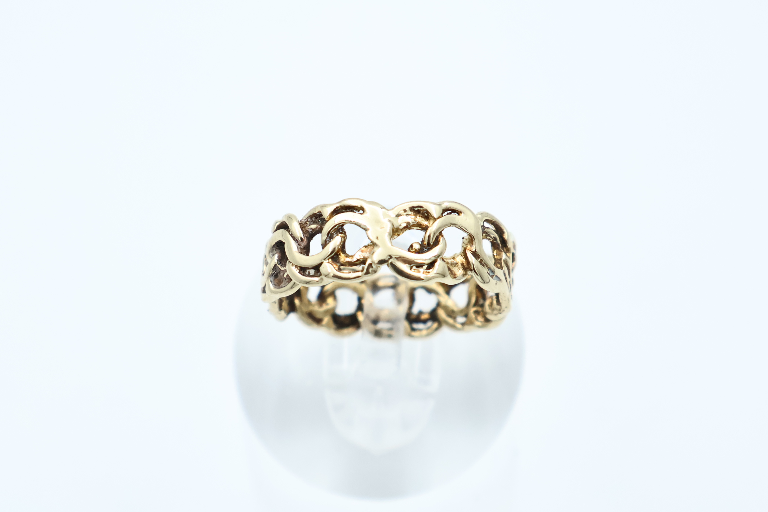 Ring i gult gull med kulturperler 14kt gult gull design E.Christophersen AS, Sandnes største breddemål 10,09 mm totalvekt 2,36 gram