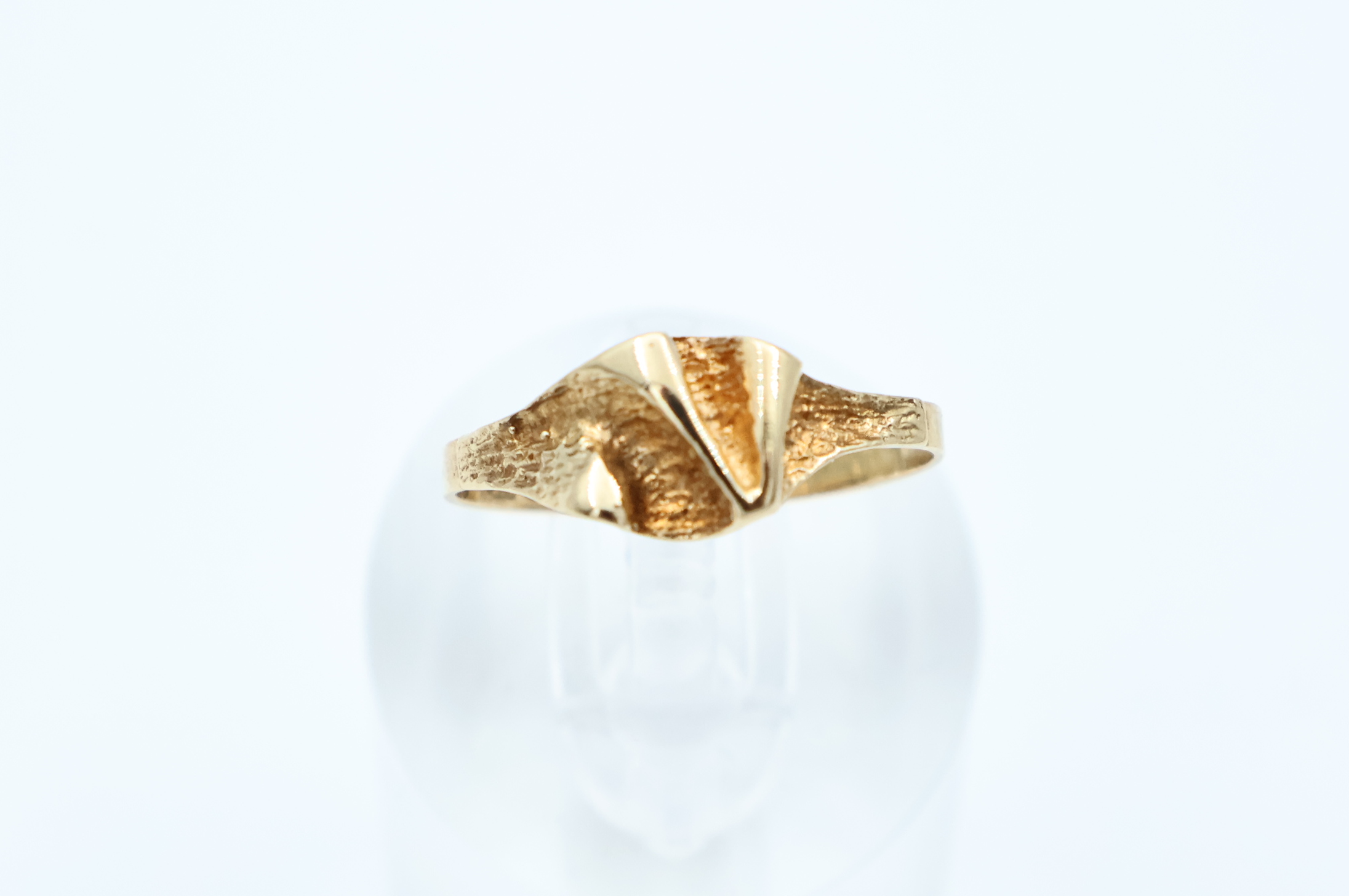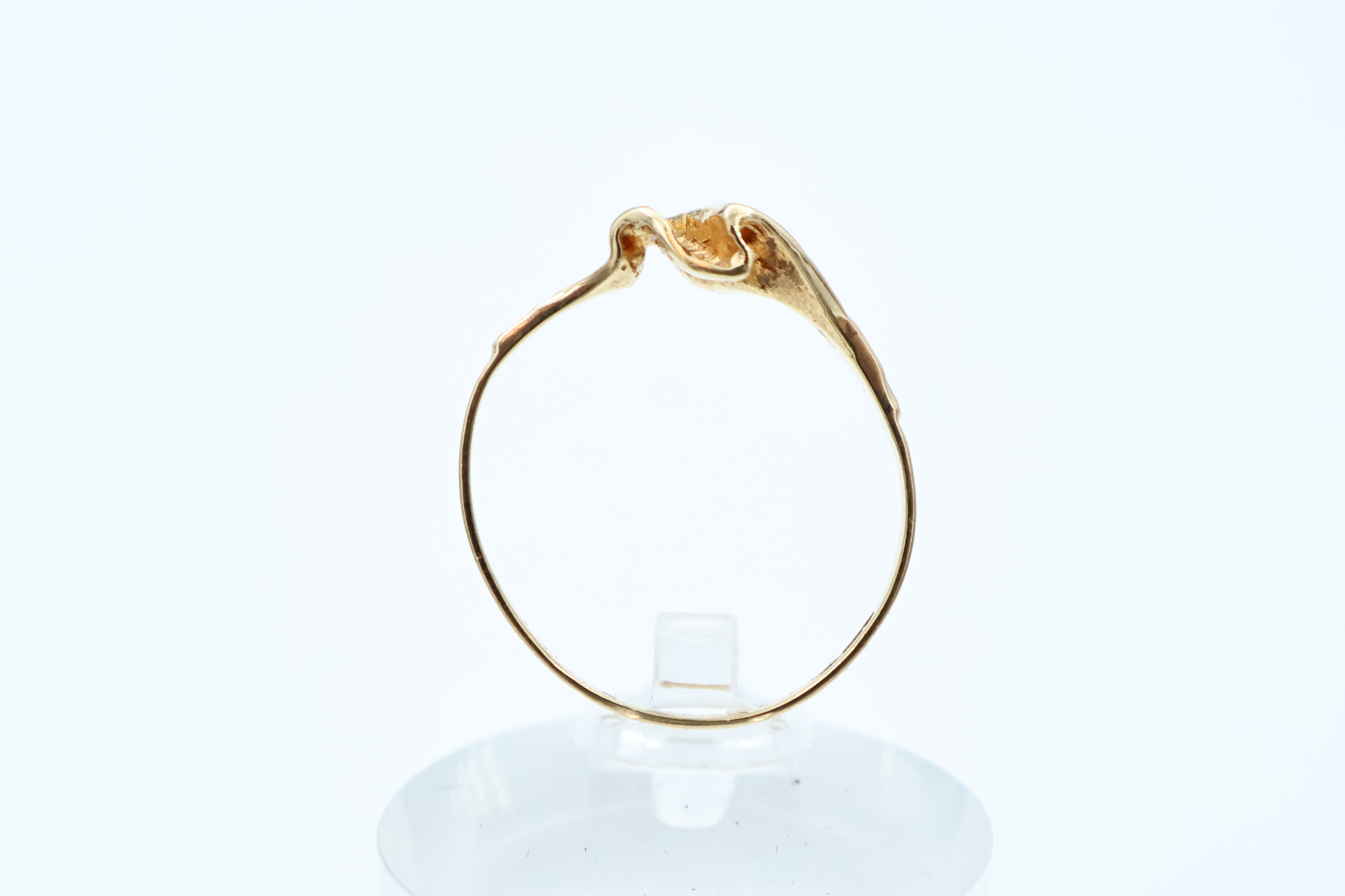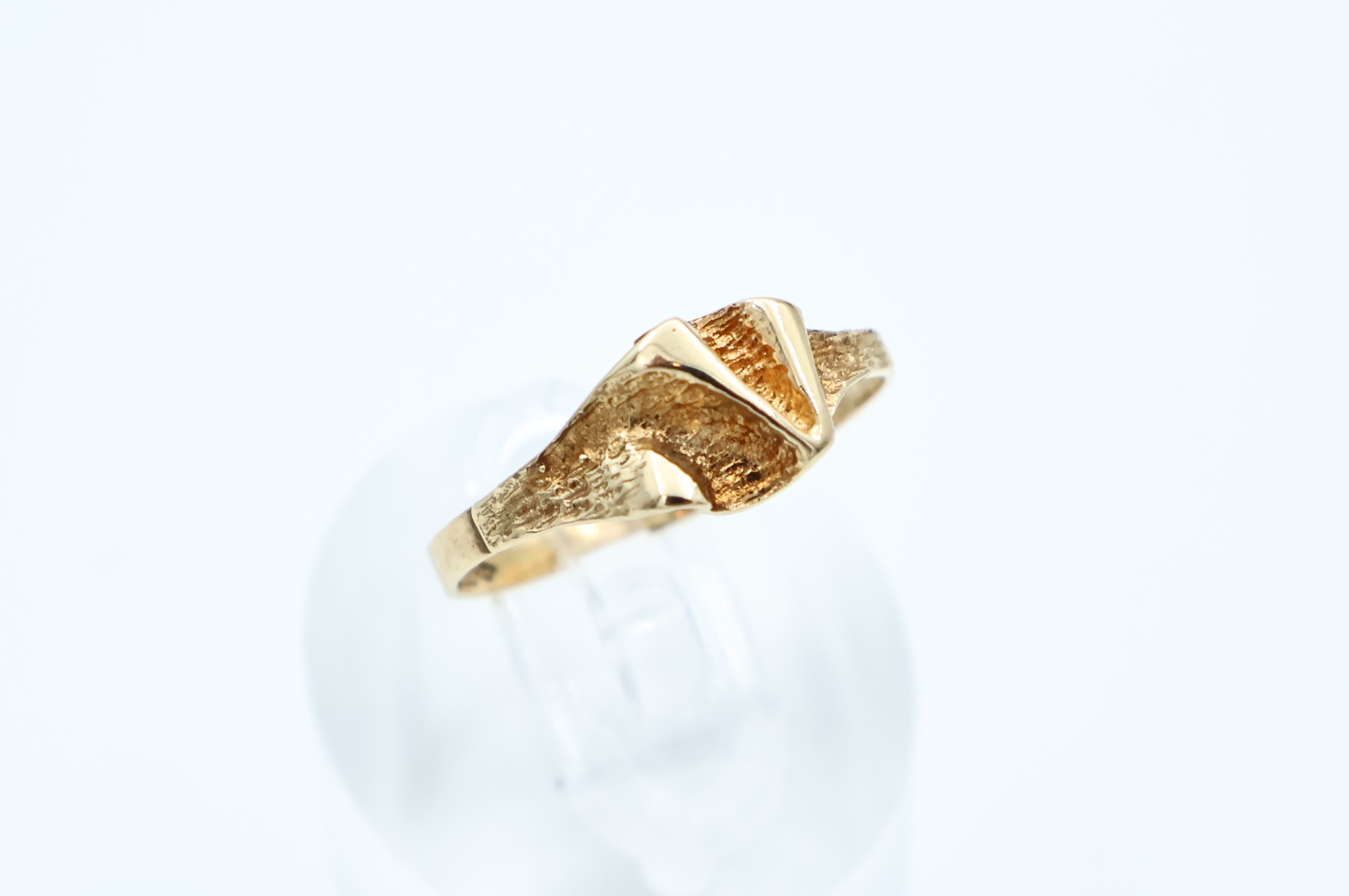 Ring i flerfarget gull med diamant 14kt gult, rødt og hvitt gull største breddemål 6,10 mm totalvekt 3,08 gram estimert
