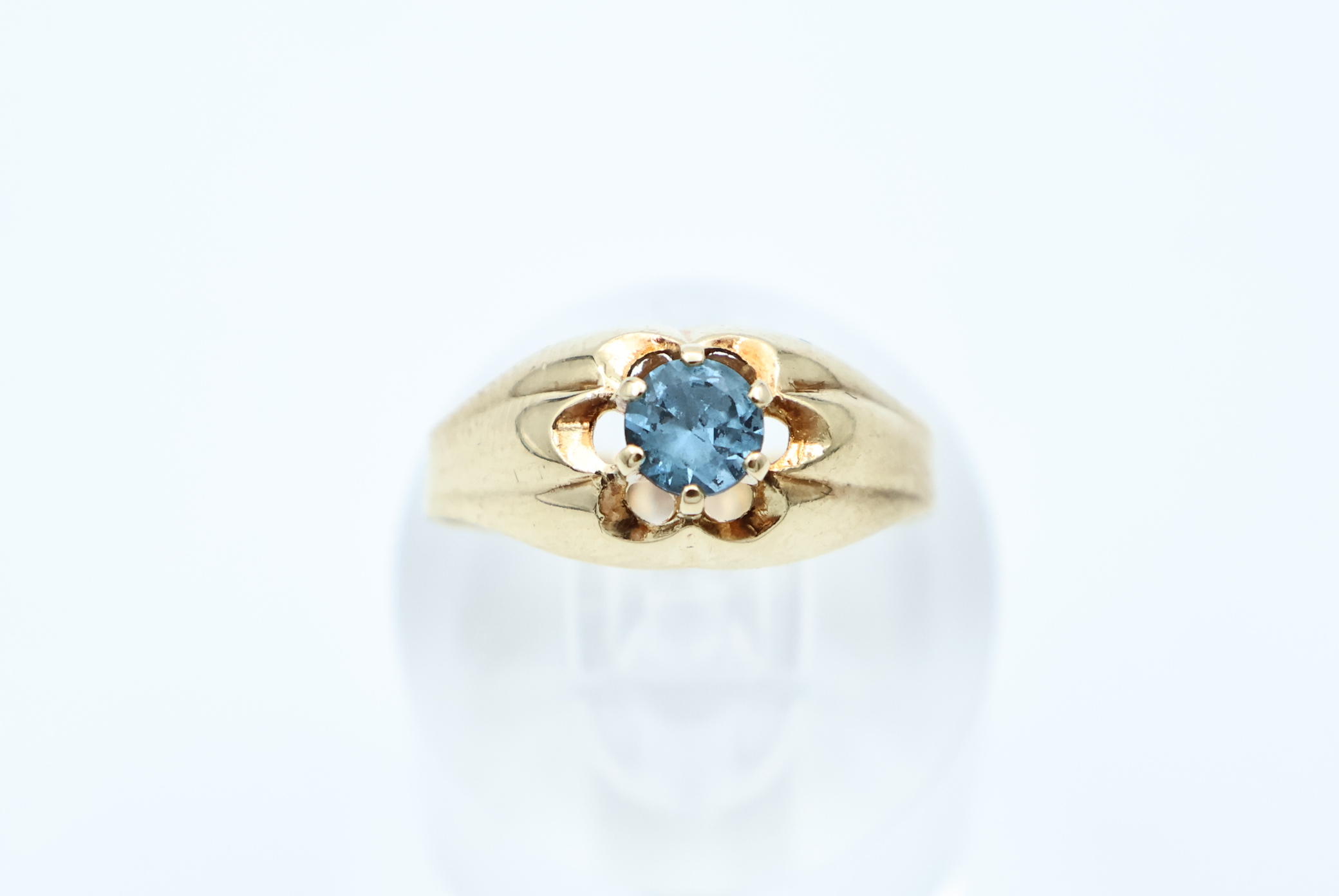 Ring i gult gull med blå sten
