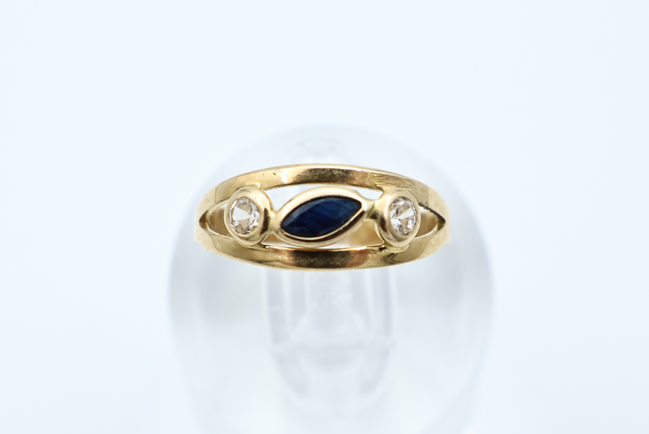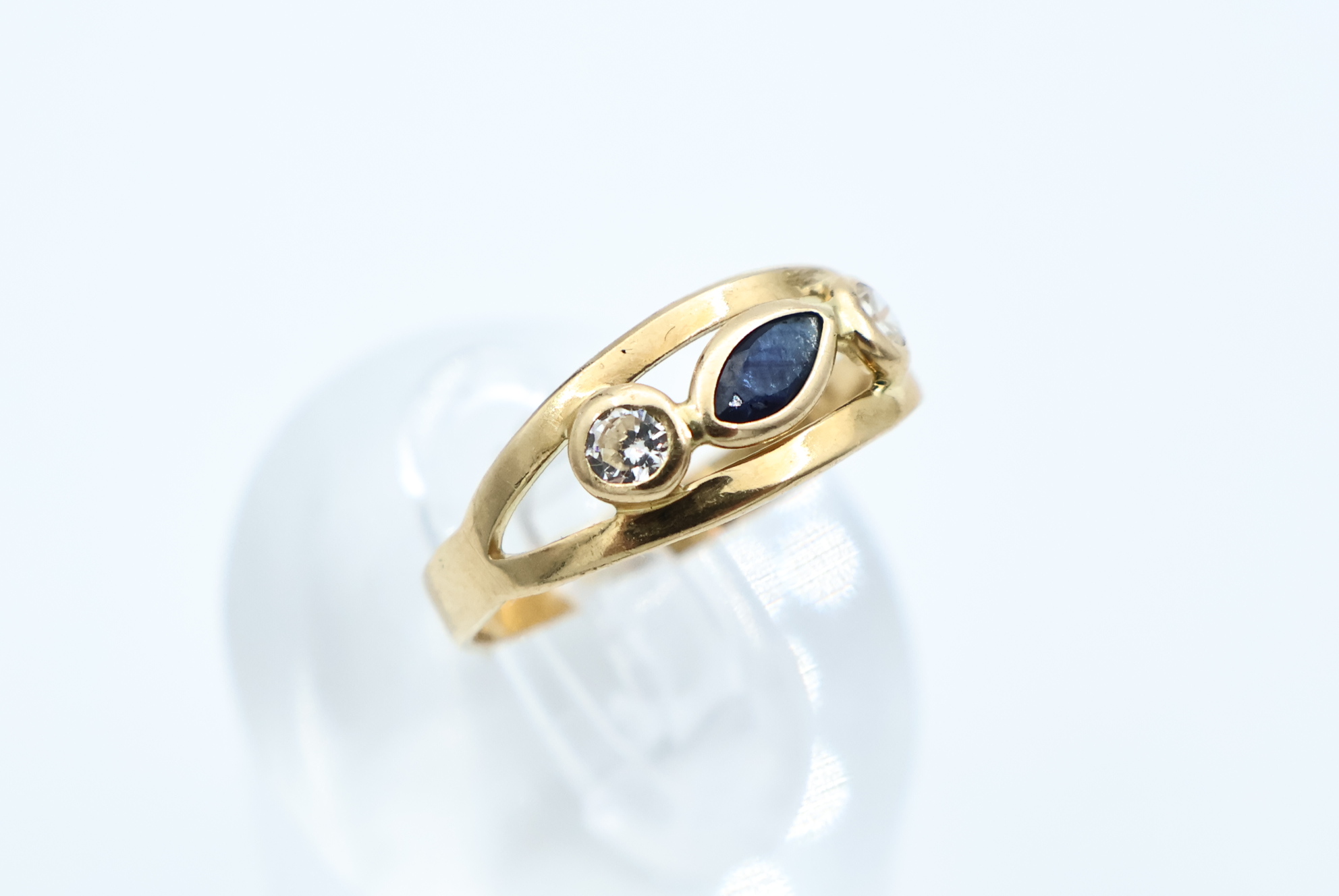 Ring i gult gull med blå sten
