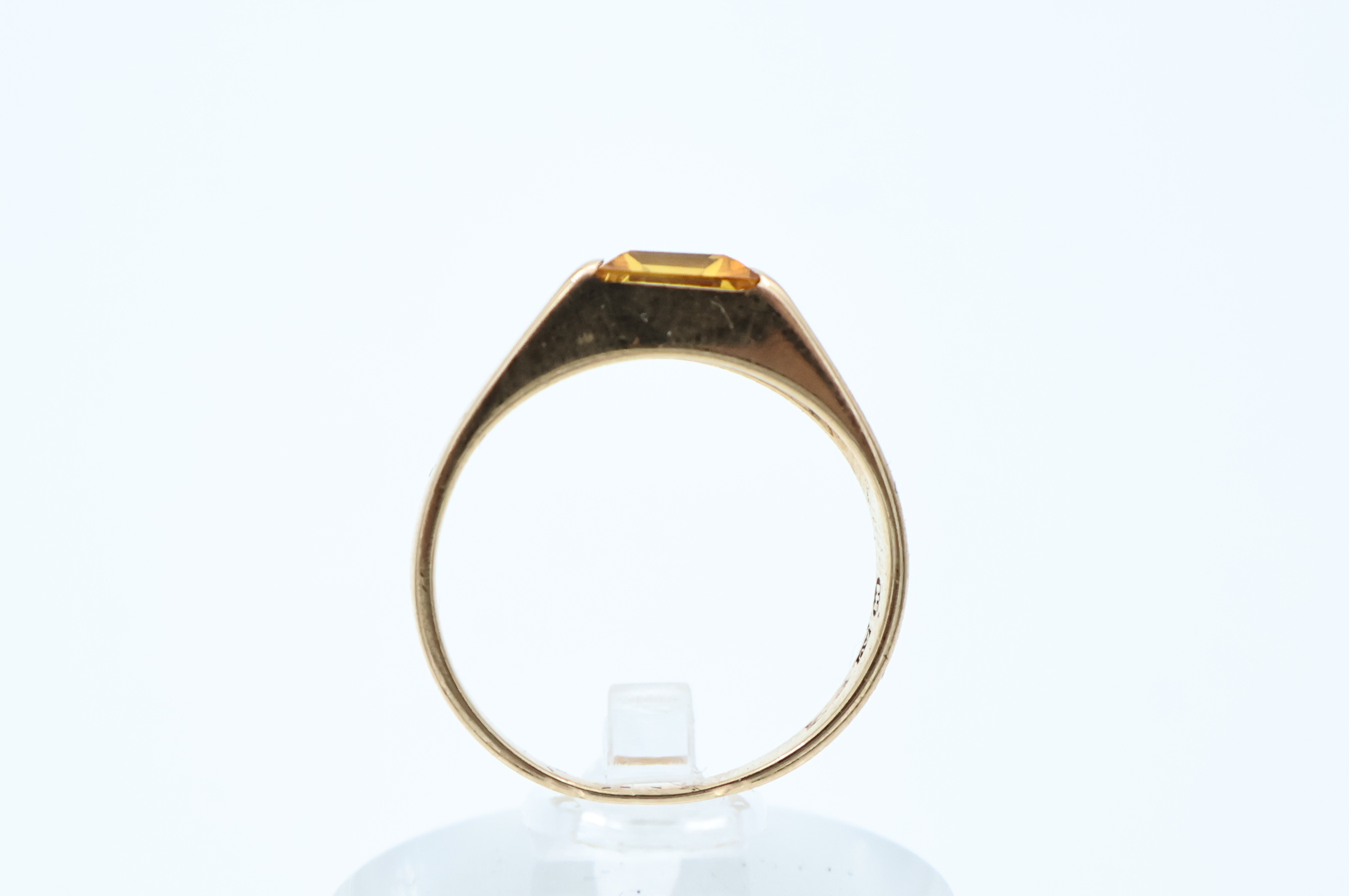 Ring i gult gull med diamanter 14kt gult gull største breddemål 16,61 mm totalvekt 3,09 gram estimert 0.03ct fordelt på