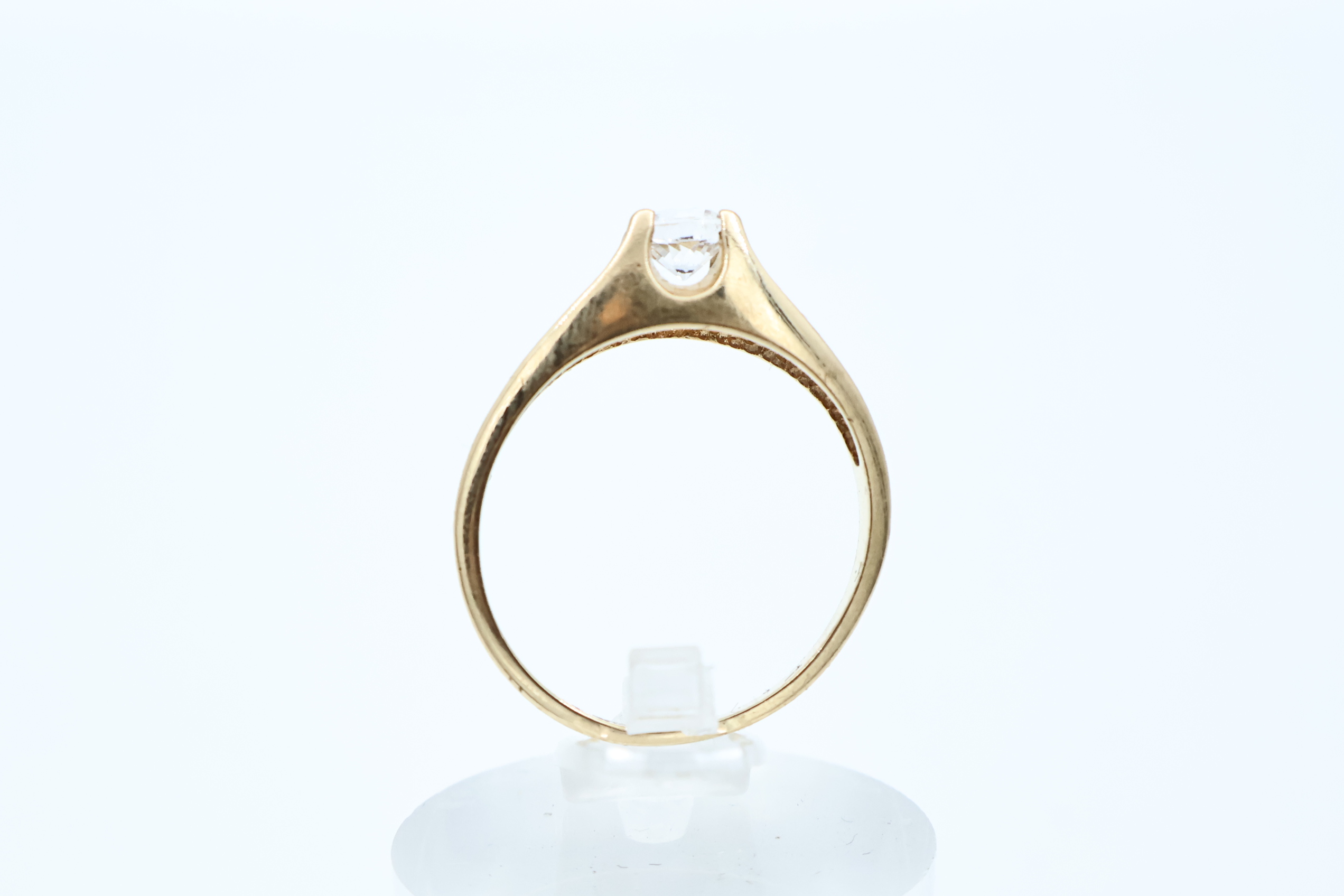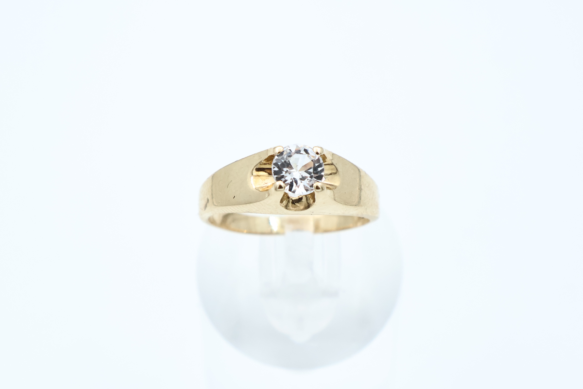 Ring i gult gull med hvit sten