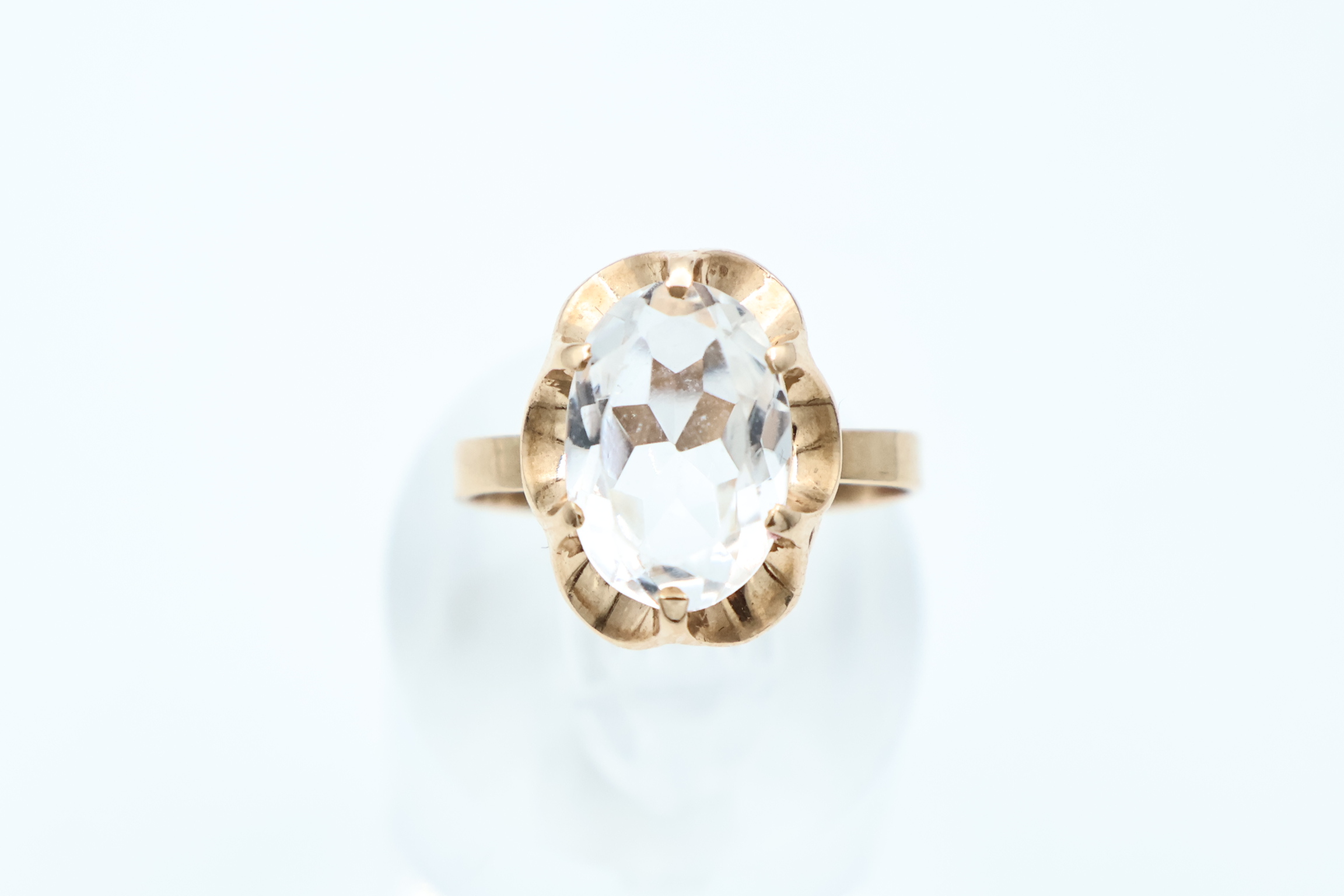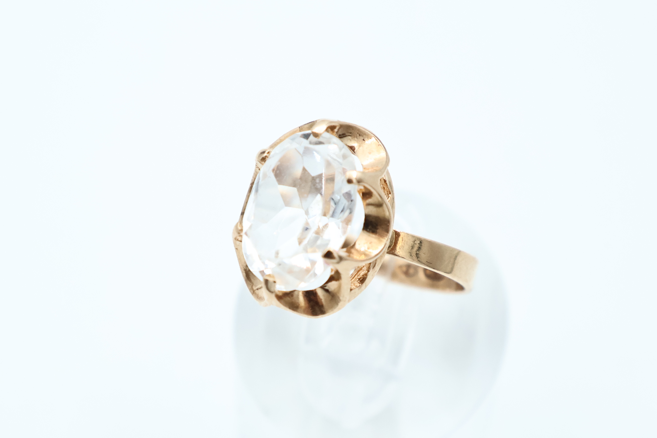 Ring i flerfarget gull med diamant 14kt gult, rødt og hvitt gull største breddemål 6,10 mm totalvekt 3,08 gram estimert
