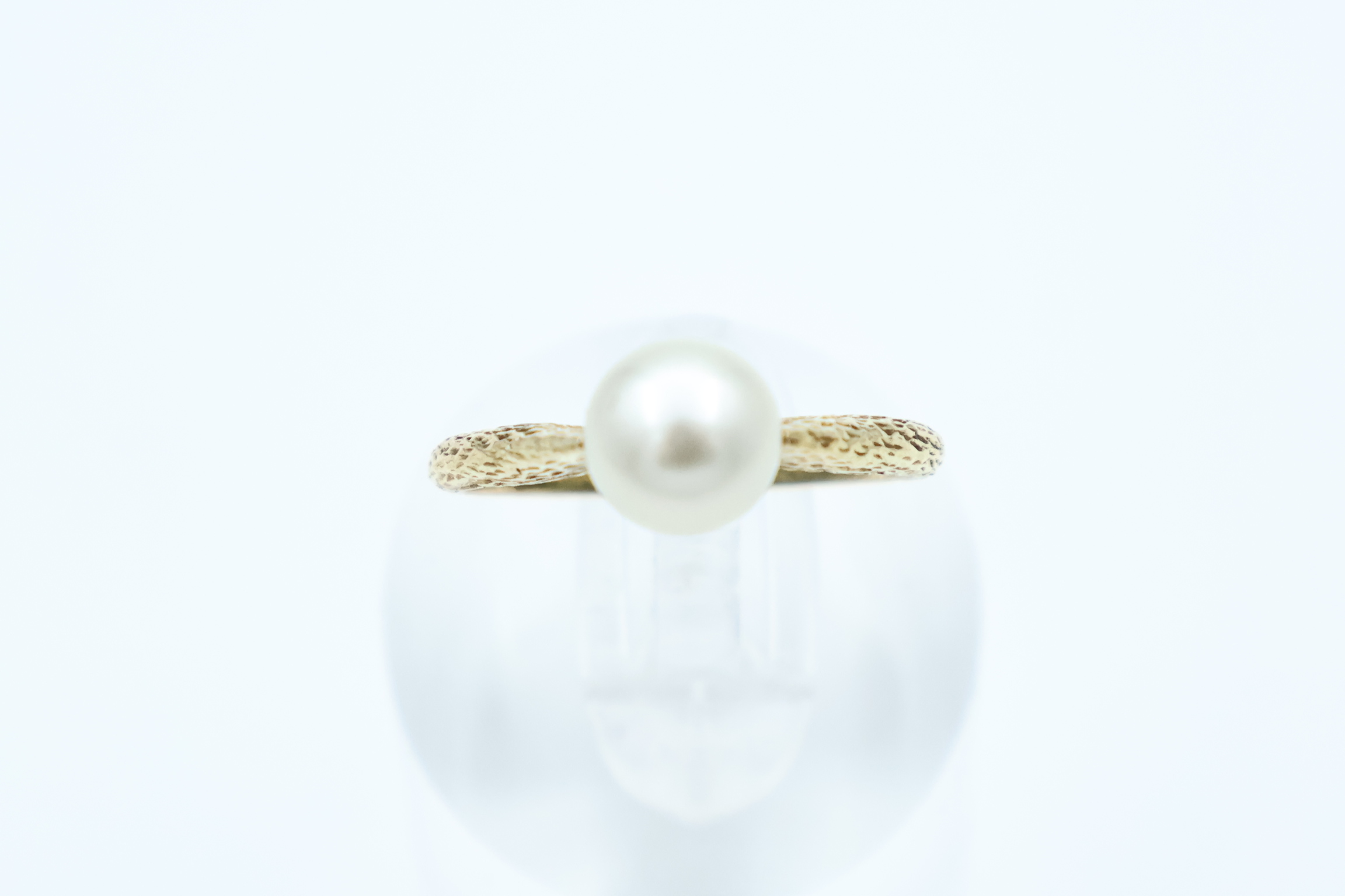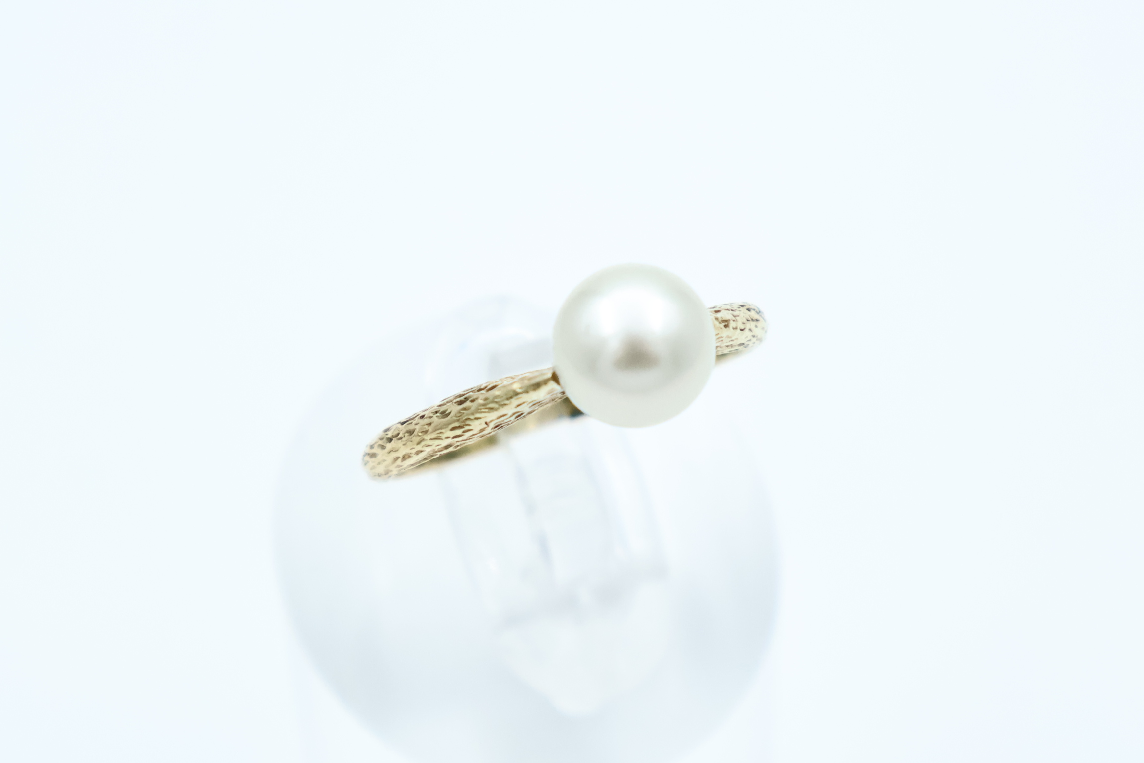Ring i gult gull med diamanter 14kt gult gull største breddemål 16,61 mm totalvekt 3,09 gram estimert 0.03ct fordelt på