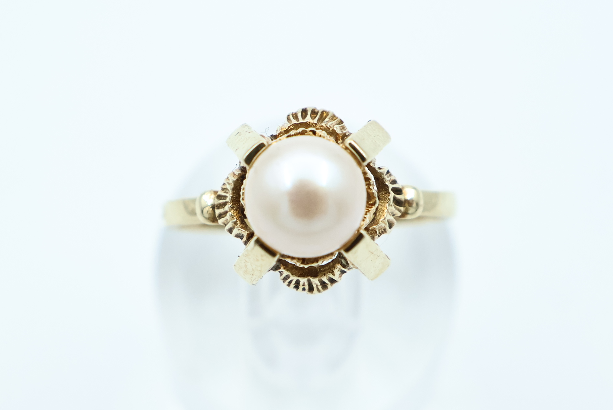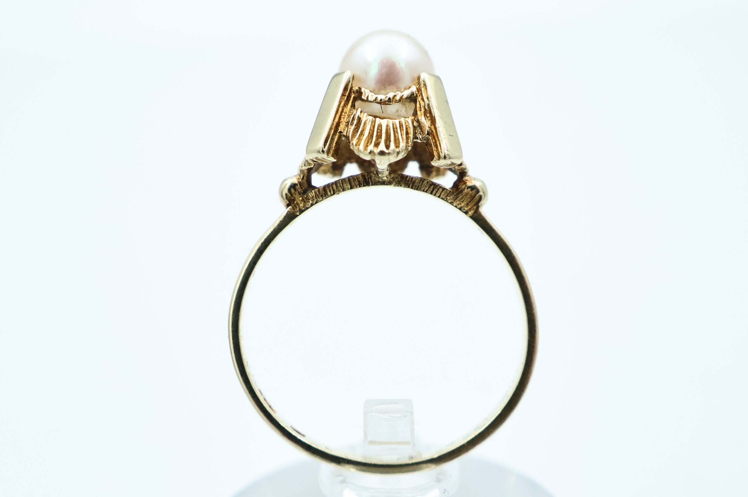 Ring i gult gull med perle