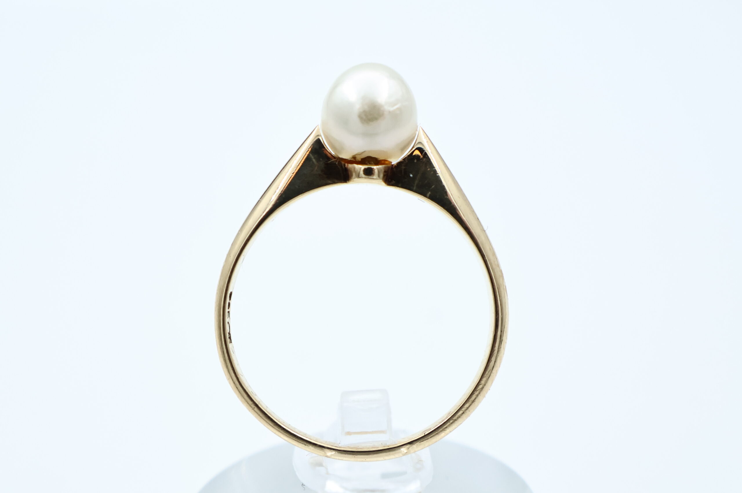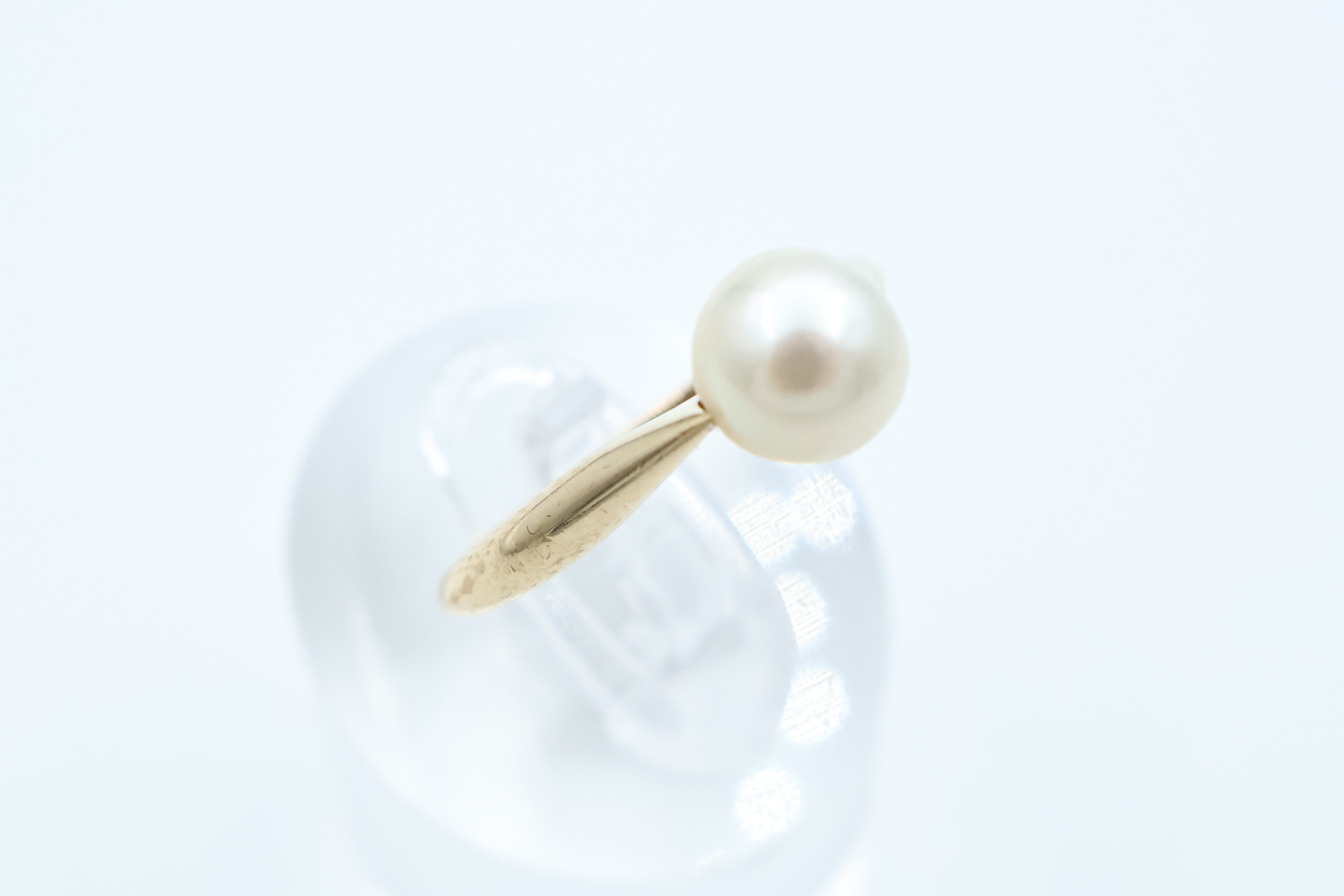 Ring i gult gull med kulturperler 14kt gult gull design E.Christophersen AS, Sandnes største breddemål 10,09 mm totalvekt 2,36 gram