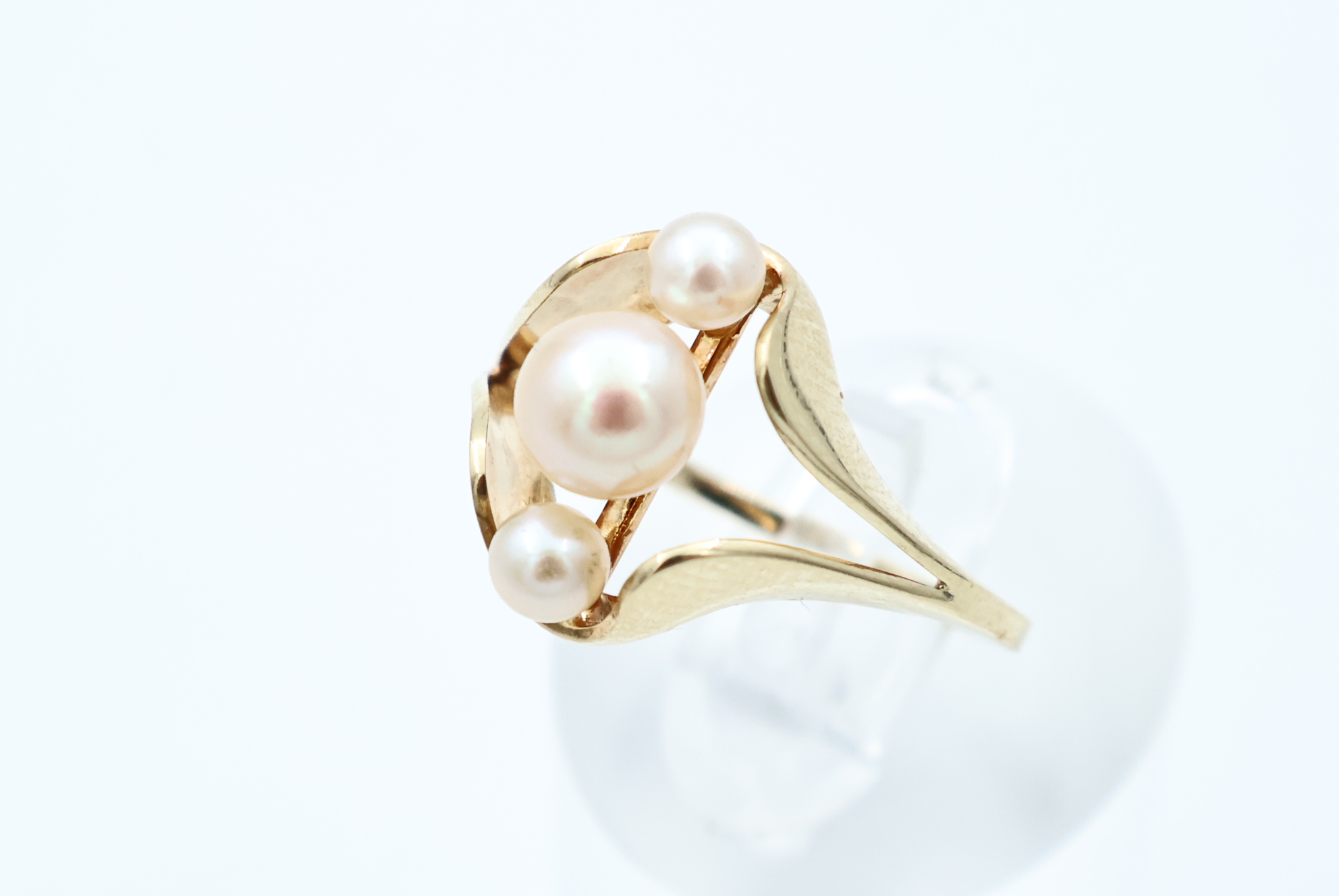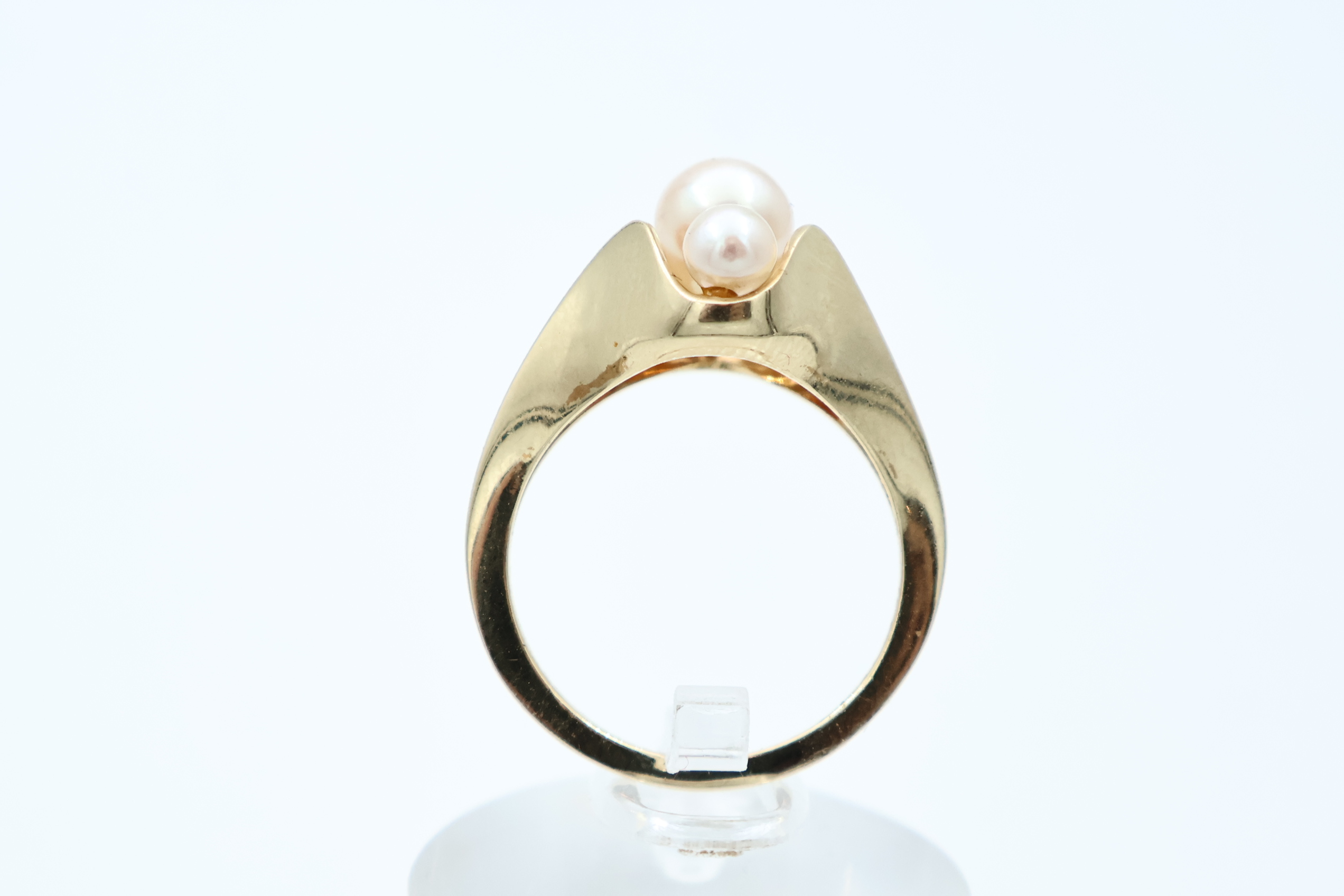 Ring i gult gull med perler