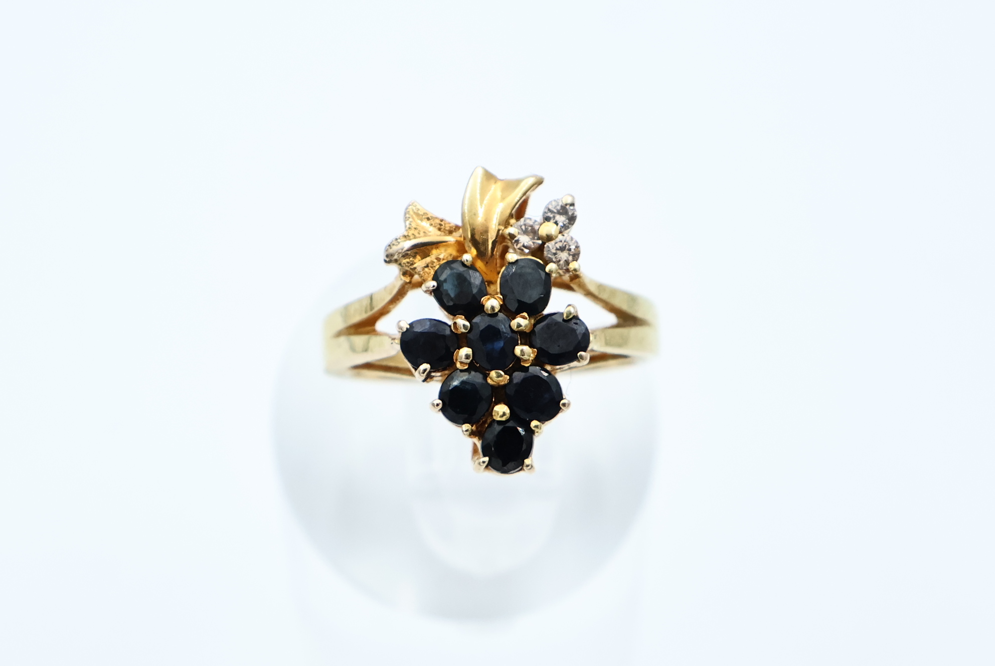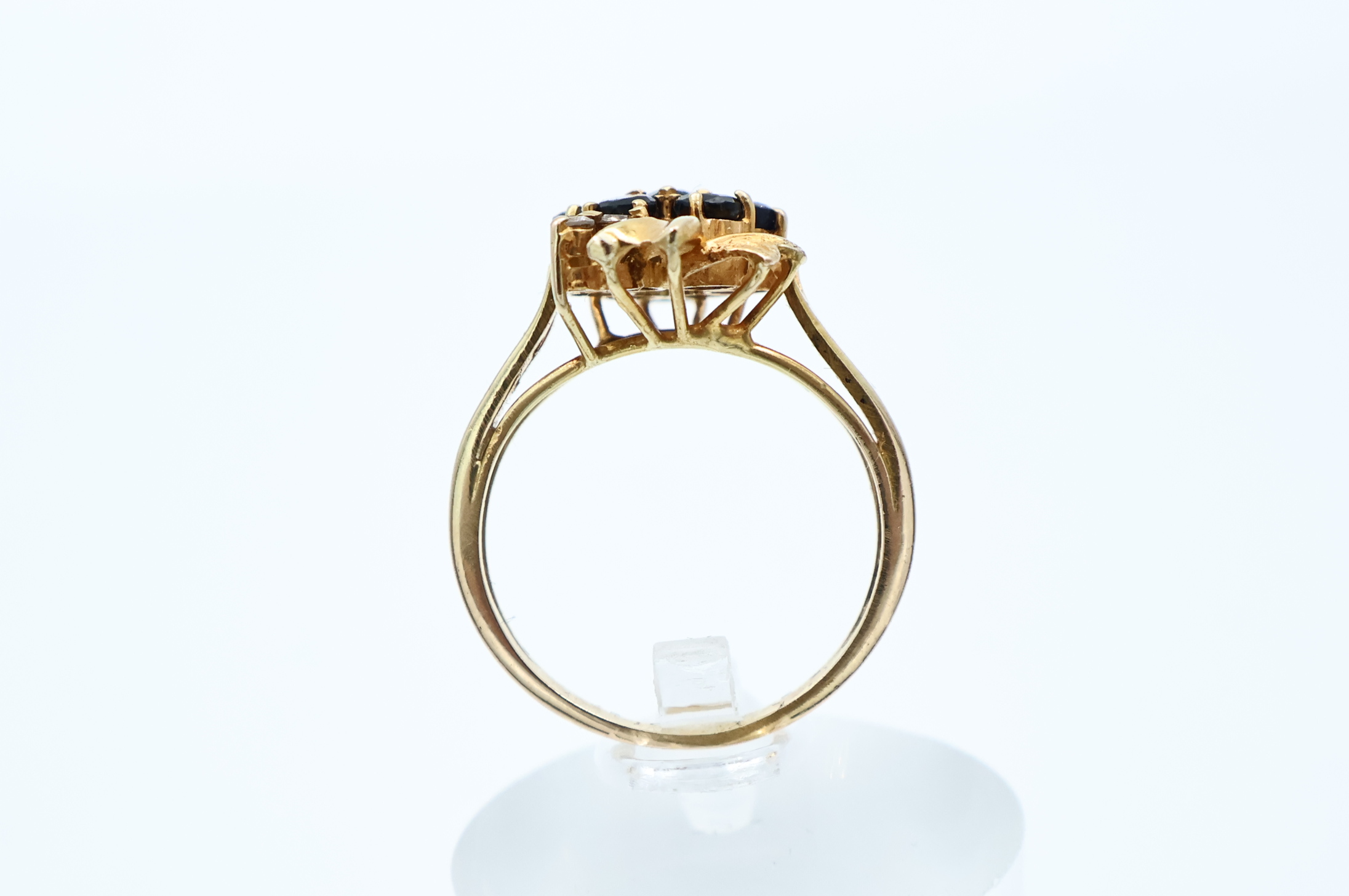 Ring i gult gull med svart stener og små diamanter