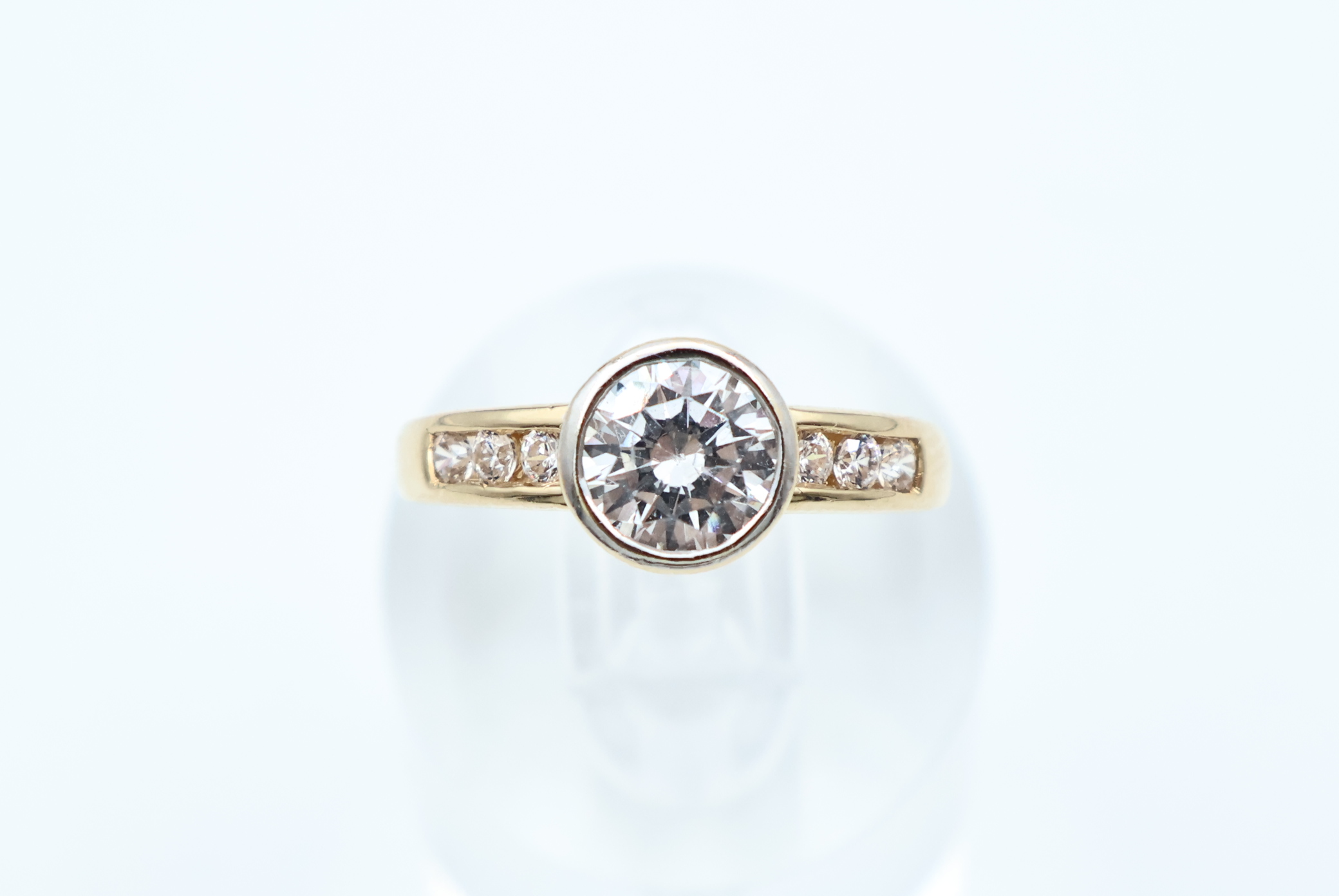 Ring i hvitt gull med diamanter fattet i skinne 18kt hvitt gull største breddemål 3,8 mm totalvekt 3,1 gram estimert