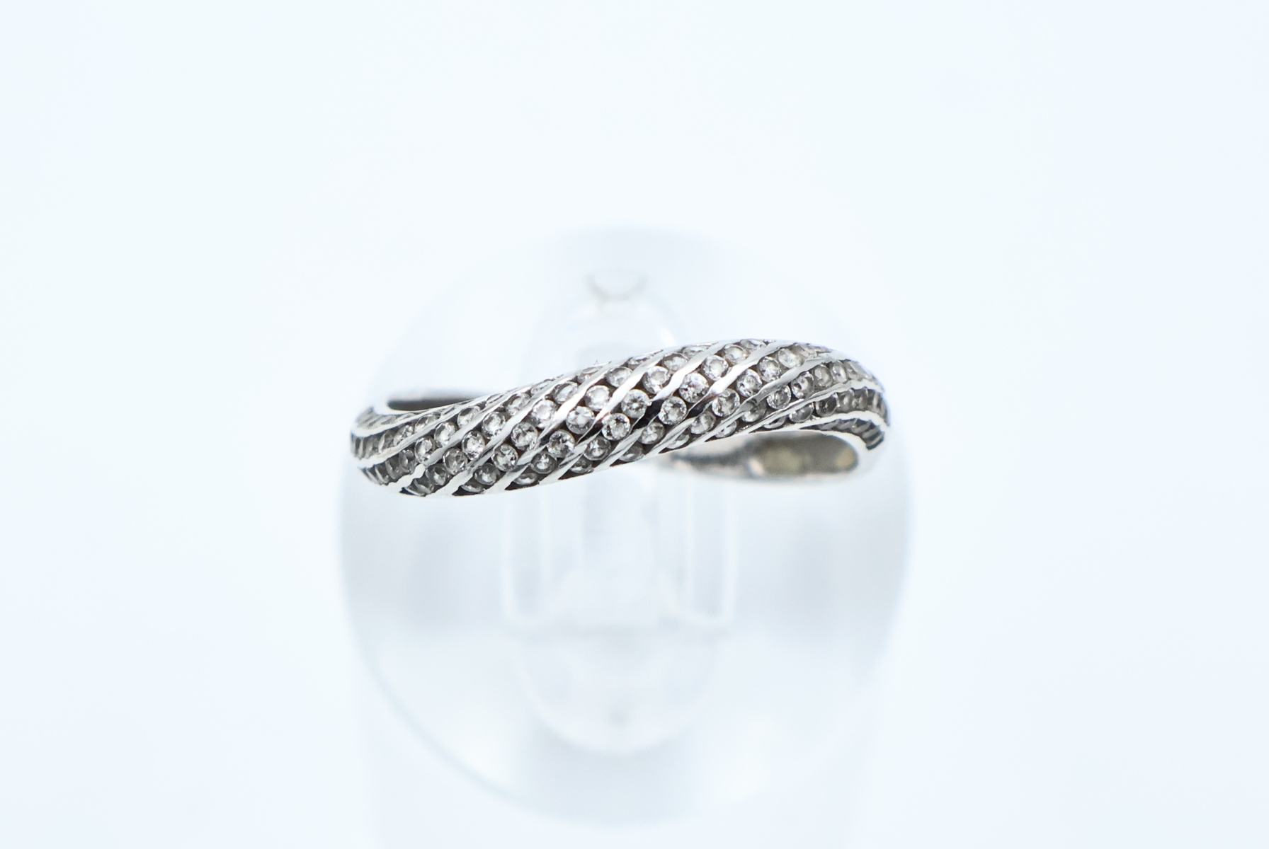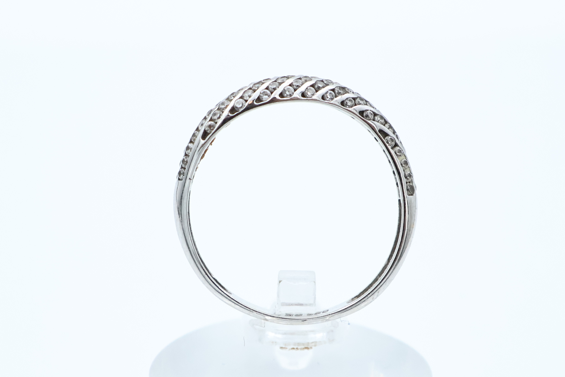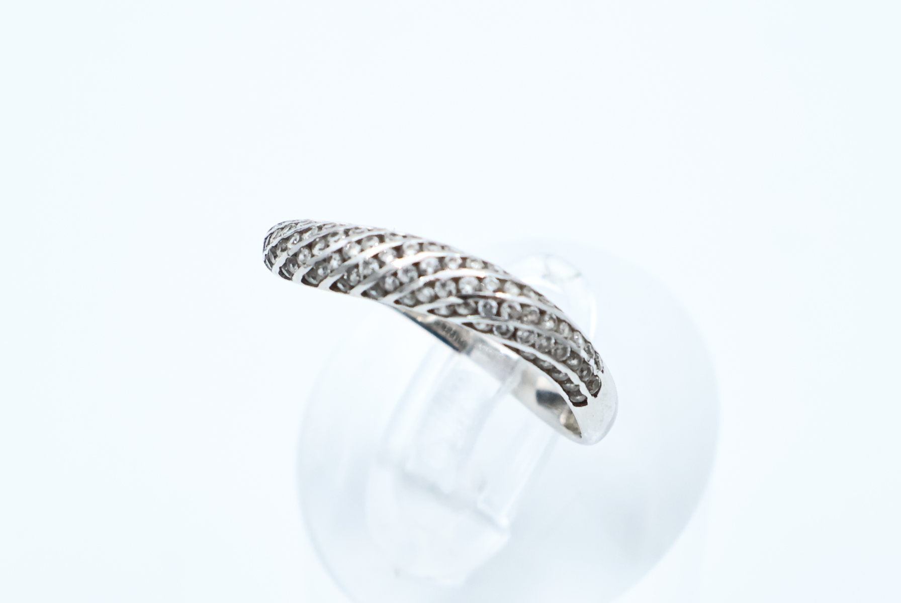 Ring i hvitt gull med diamanter fattet i skinne 18kt hvitt gull største breddemål 3,8 mm totalvekt 3,1 gram estimert
