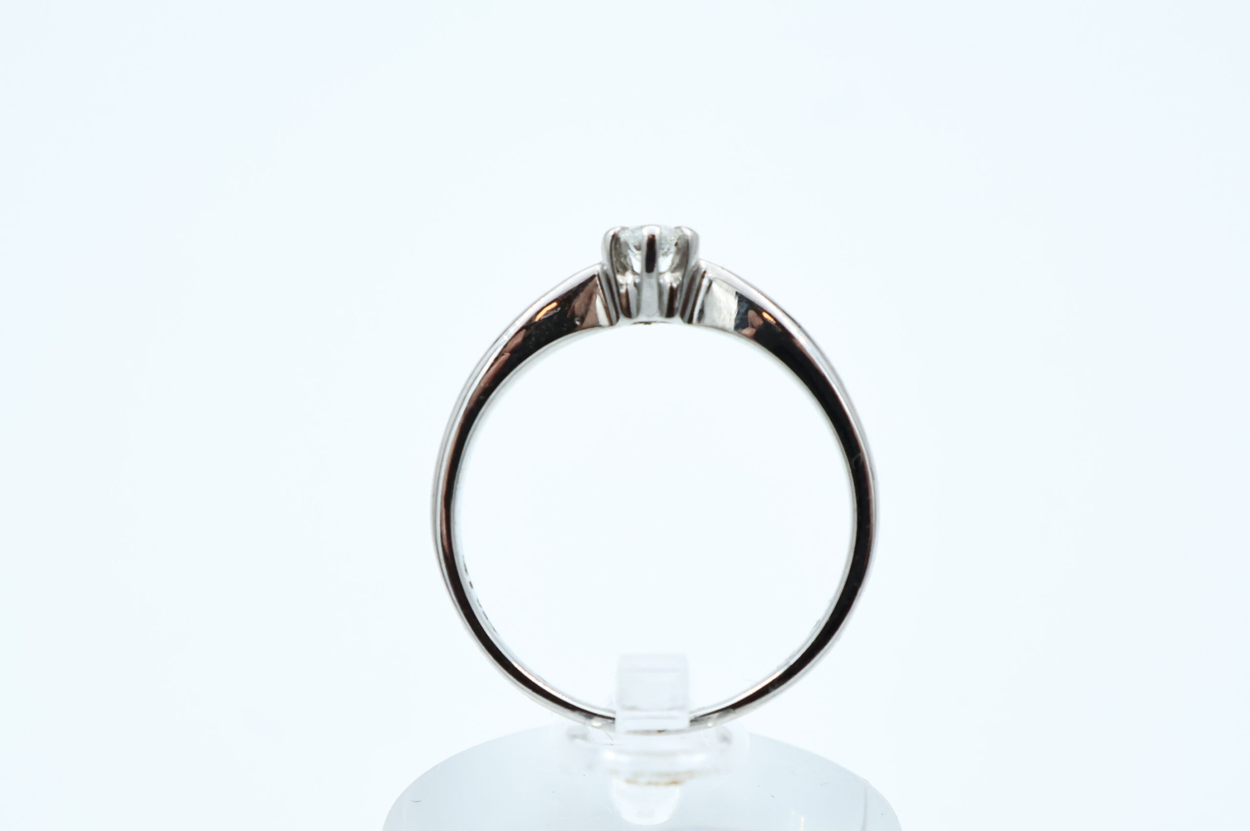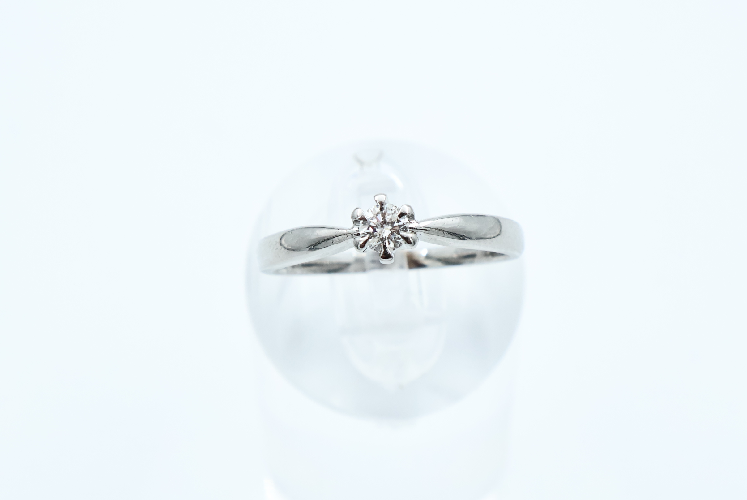 Ring i hvitt gull med diamanter 14kt hvitt gull største breddemål 2,52 mm totalvekt 1,73 gram estimert 0,18ct fordelt på