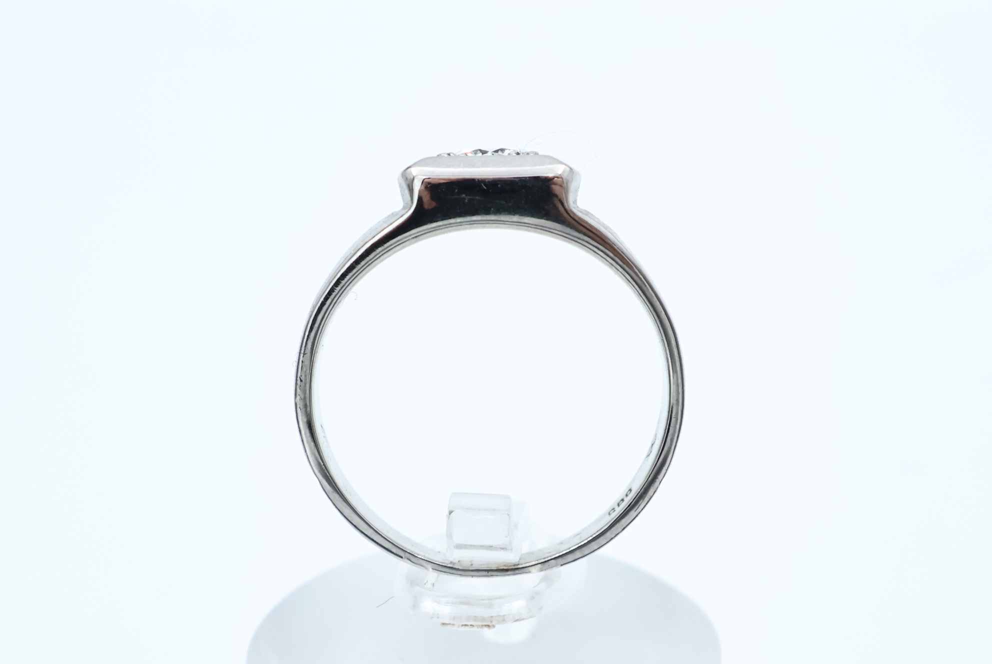 Ring i hvitt gull med diamanter 14kt hvitt gull største breddemål 2,52 mm totalvekt 1,73 gram estimert 0,18ct fordelt på