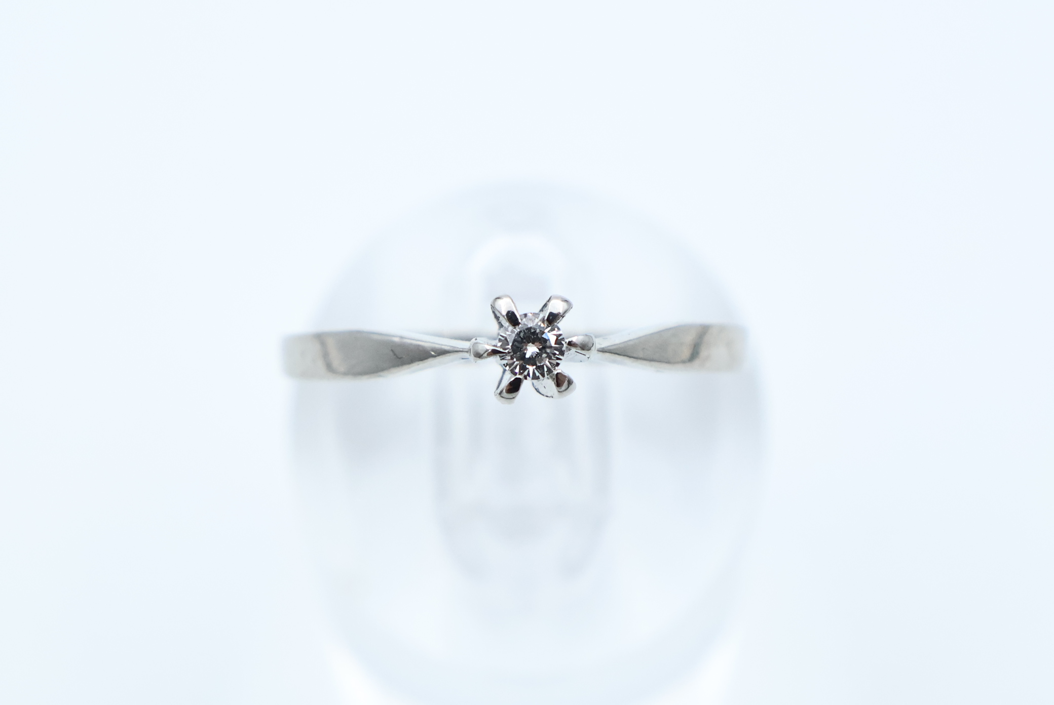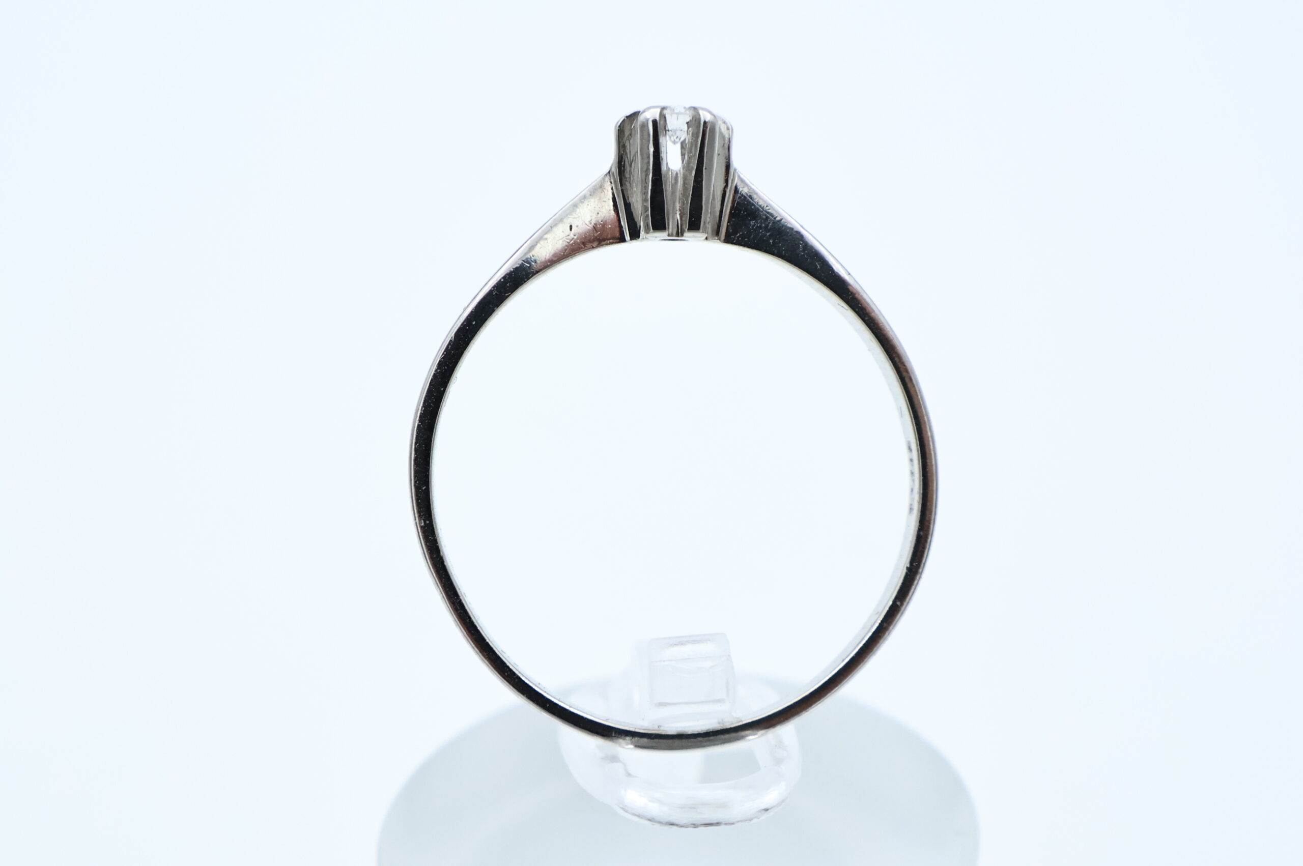 Ring i hvitt gull med diamanter fattet i skinne 18kt hvitt gull største breddemål 3,8 mm totalvekt 3,1 gram estimert