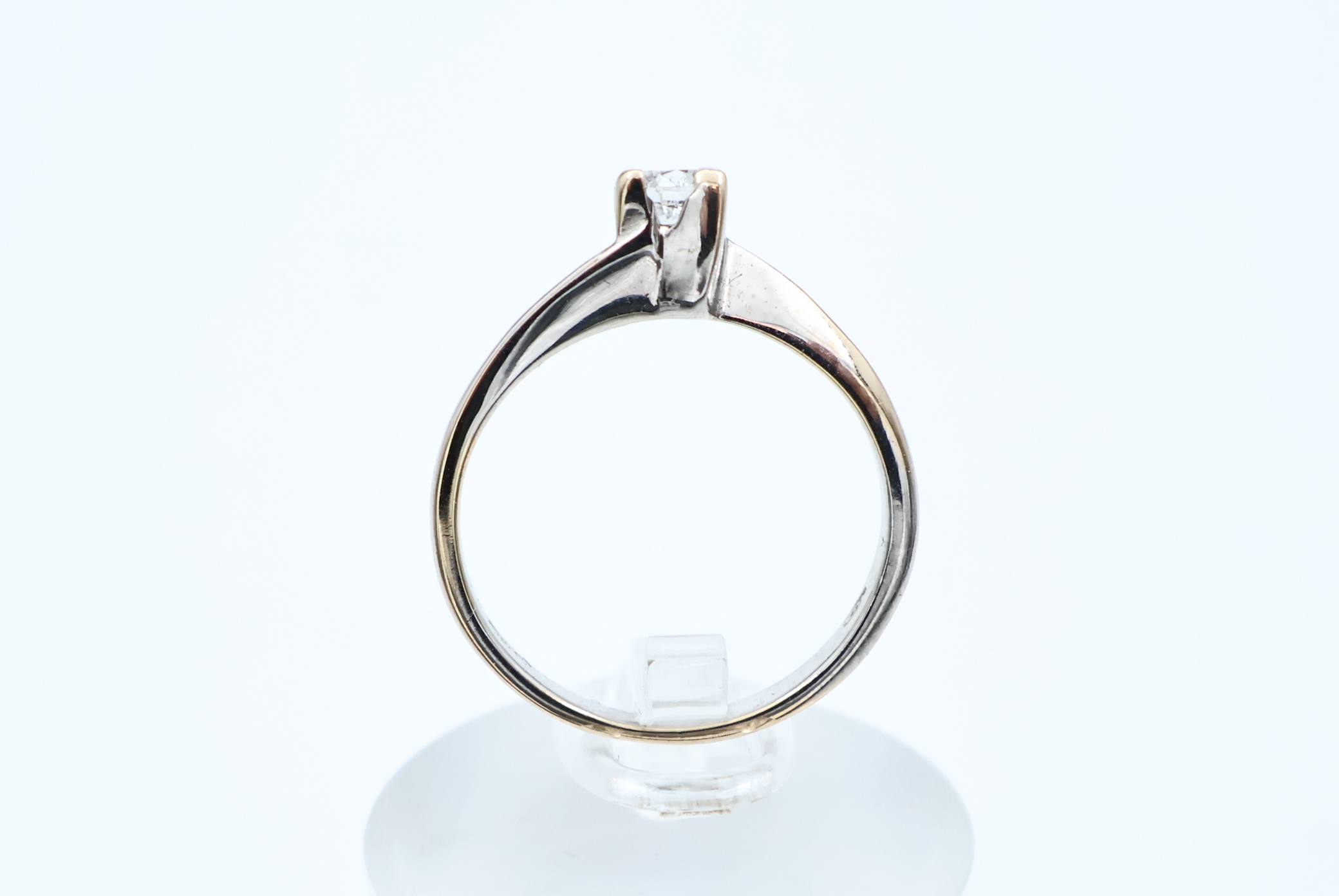 Ring i hvitt gull med diamant 14kt hvitt gull største breddemål 3,70 mm totalvekt 1,9 gram estimert diamantvekt 0.06ct estimert