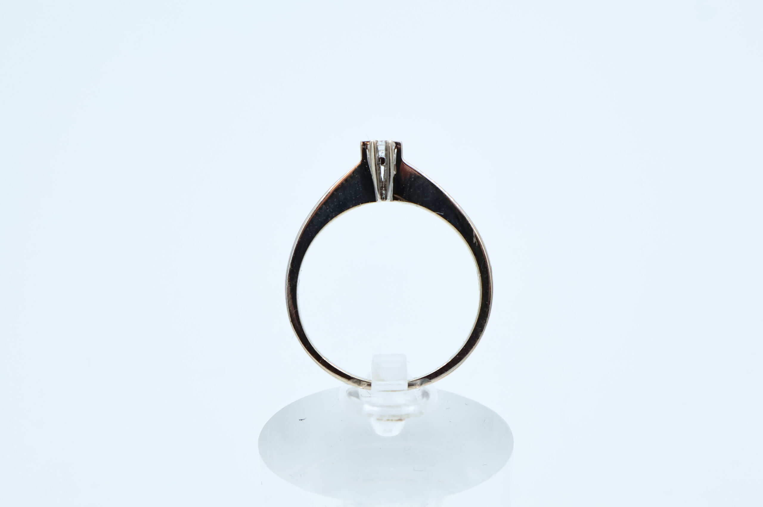 Ring i flerfarget gull med diamant 14kt gult, rødt og hvitt gull største breddemål 6,10 mm totalvekt 3,08 gram estimert