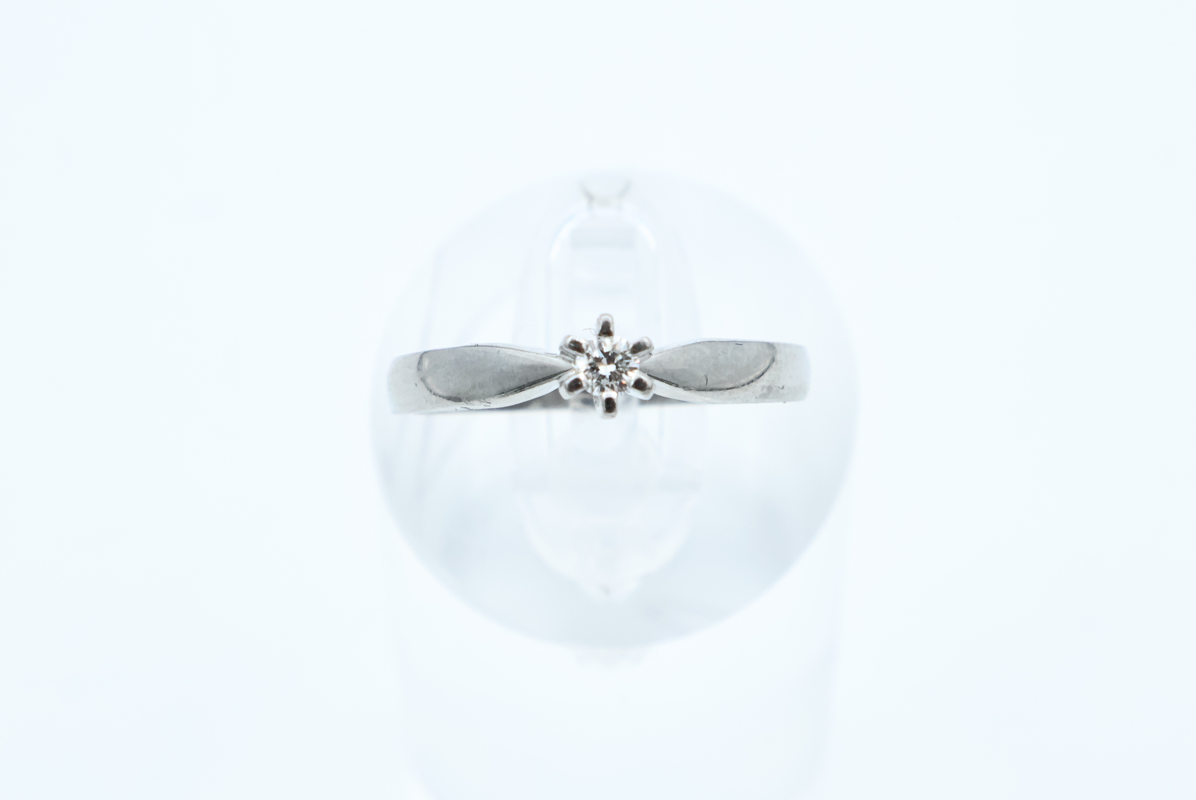 Ring i hvitt gull med diamant 14kt hvitt gull design Sigurd Homstvedt AS, Bergen største breddemål 3,4 mm totalvekt 4,2