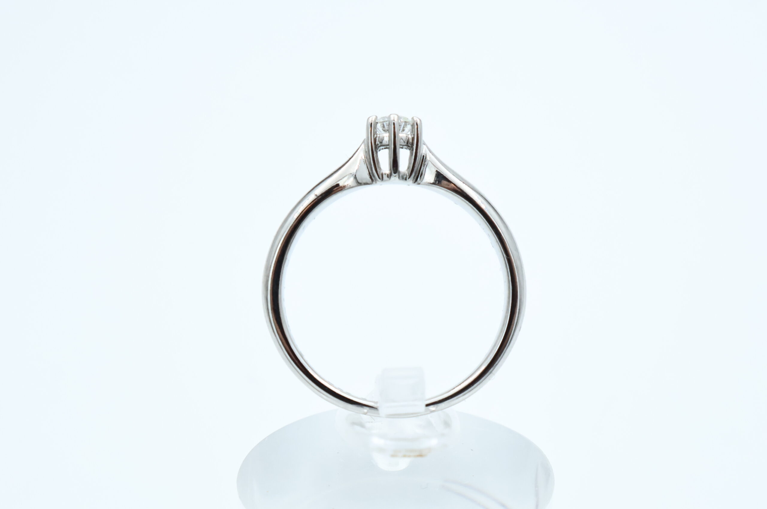 Ring i hvitt gull med diamanter 18kt hvitt gull største breddemål 4,30 mm totalvekt 3,20 gram estimert diamantvekt 0,32ct estimert