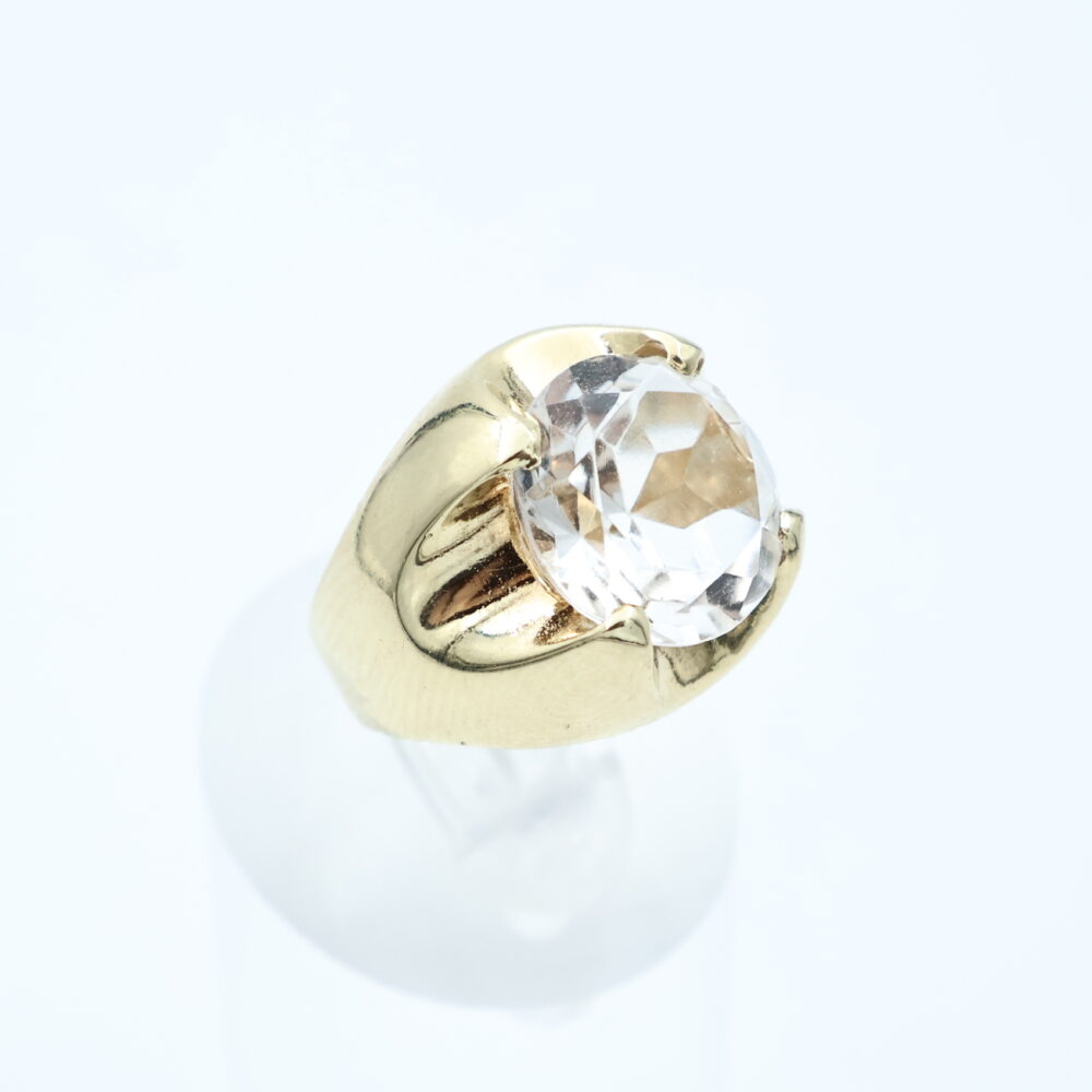 Ring i gult gull med hvit sten