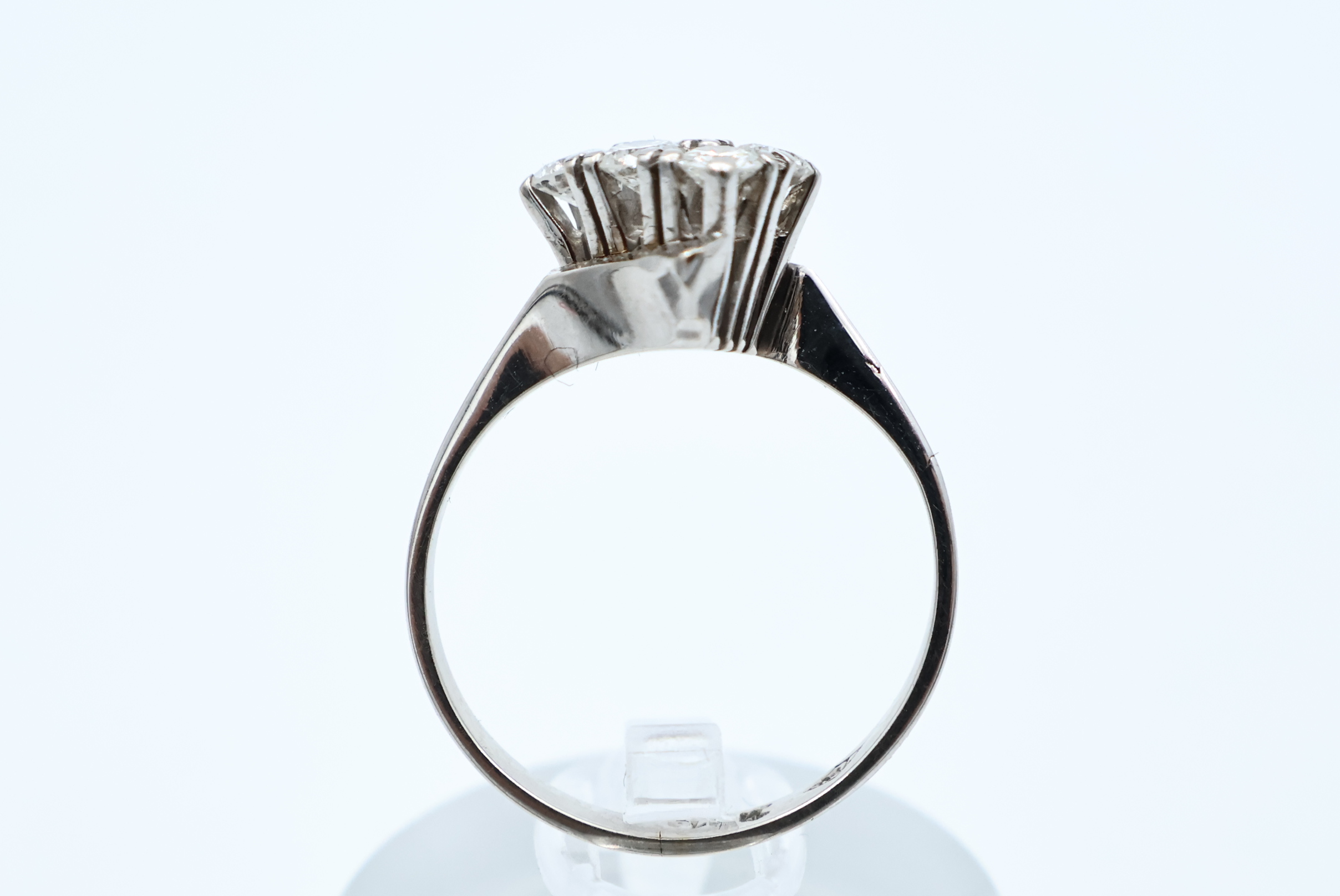 Ring i hvitt gull med diamanter 14kt hvitt gull største breddemål 2,52 mm totalvekt 1,73 gram estimert 0,18ct fordelt på