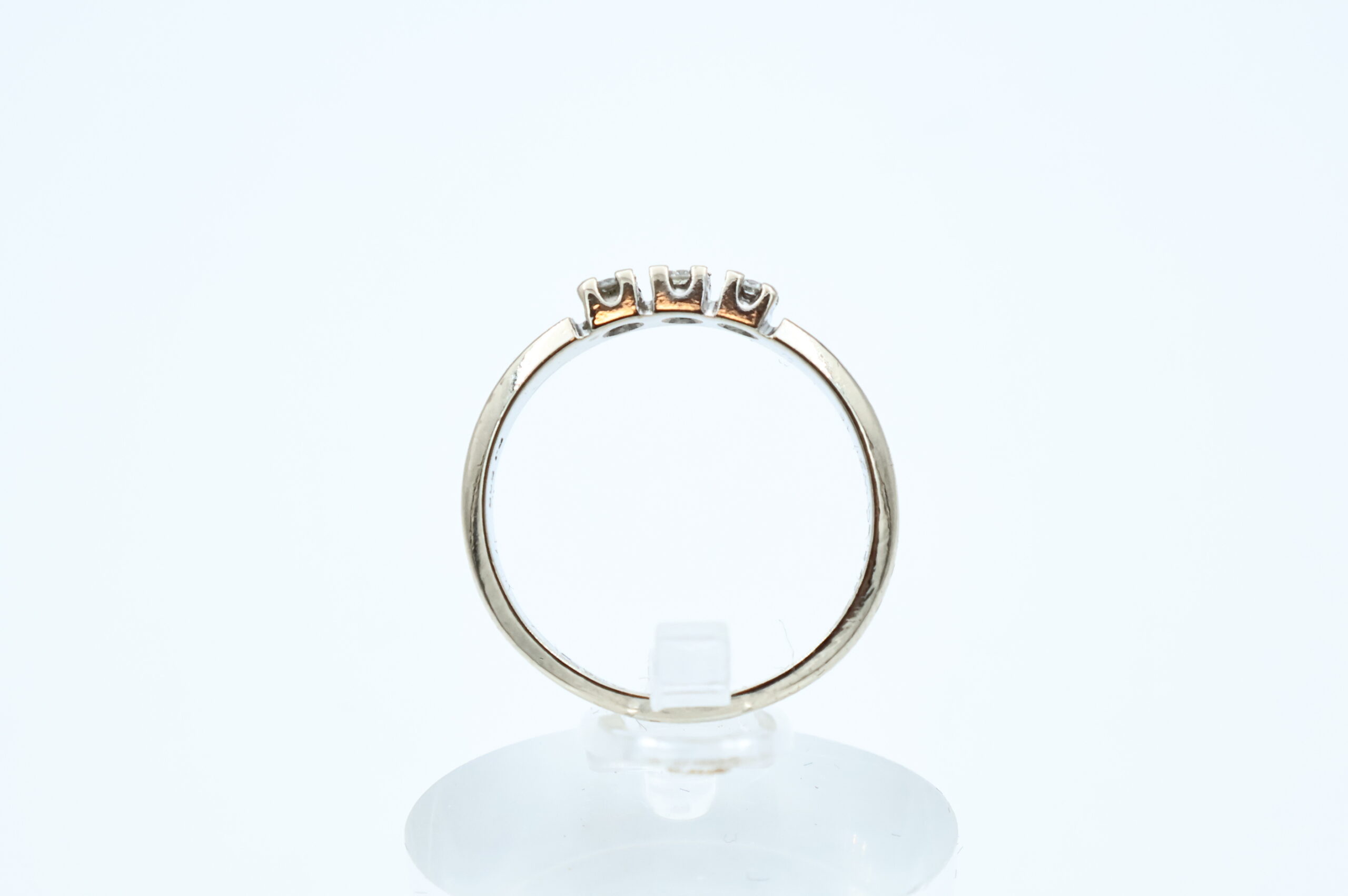 Ring i hvitt gull med diamanter 14kt hvitt gull, syretestet største breddemål 7,0 mm totalvekt 2,7 gram estimert 0.27ct fordelt