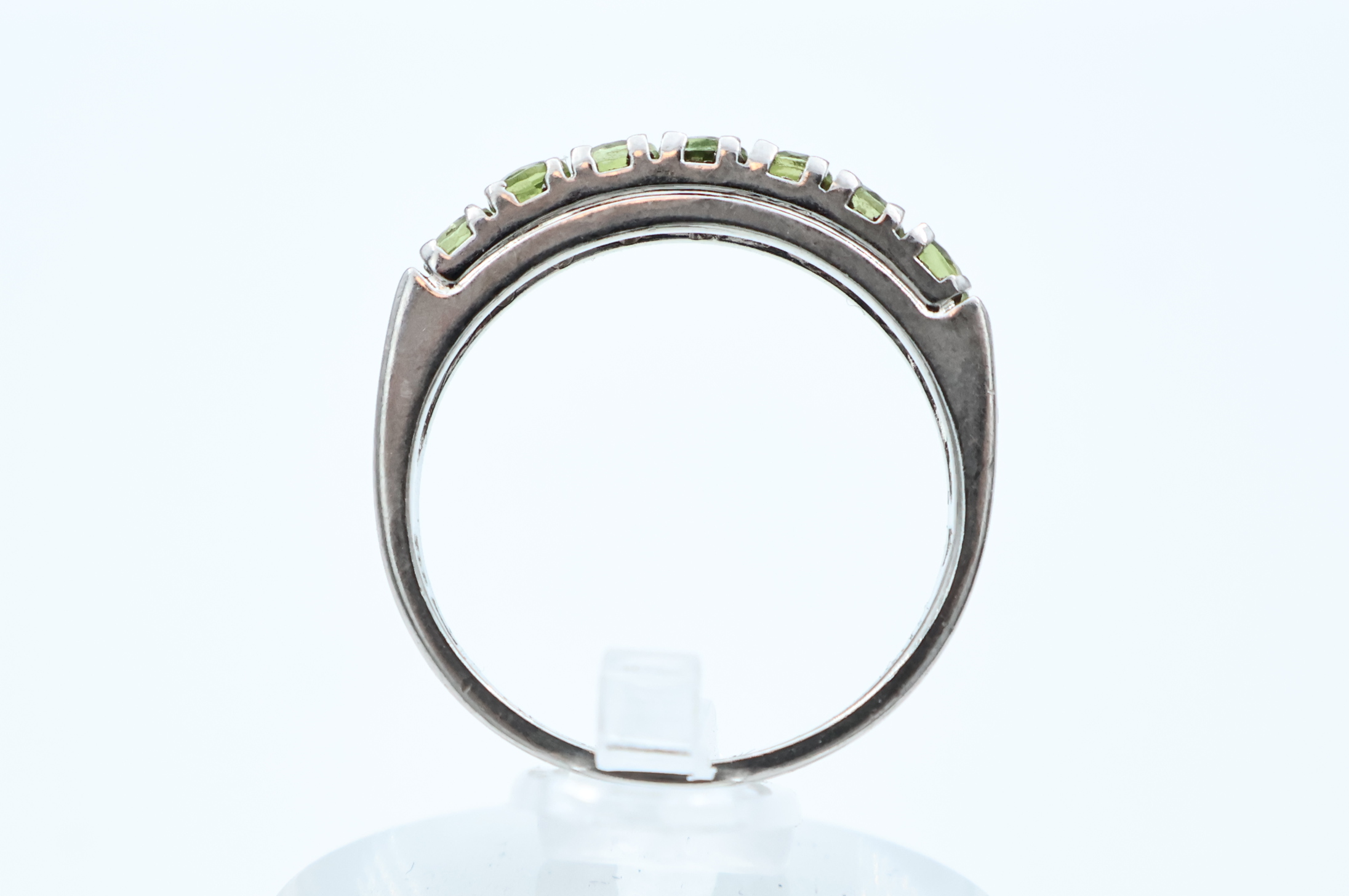 Ring i hvitt gull med diamanter 14kt hvitt gull, syretestet største breddemål 7,0 mm totalvekt 2,7 gram estimert 0.27ct fordelt