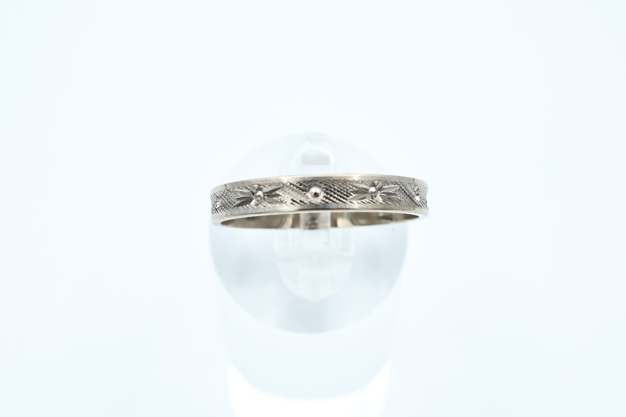 Ring i hvitt gull med diamant 14kt hvitt gull største breddemål 5,1 mm totalvekt 2,07 gram estimert diamantvekt 0.16ct estimert